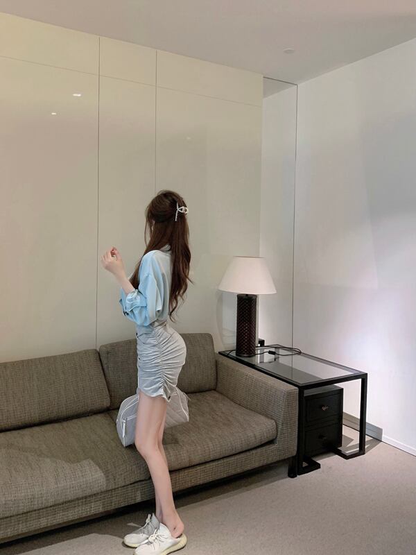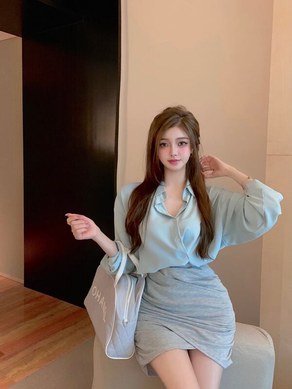 ブルーシャツ オータムスタイルルーズトップス シャツ ロング 秋物 Xiaofeijia69773672006