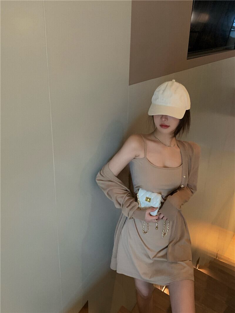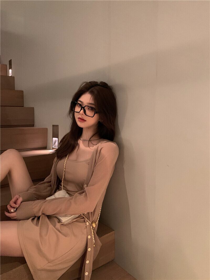 オータムニットカーディガンウェストドレス ソリッド カラー 秋物 ソリッドカラー Xiaofeijia24180070253