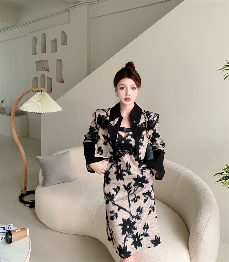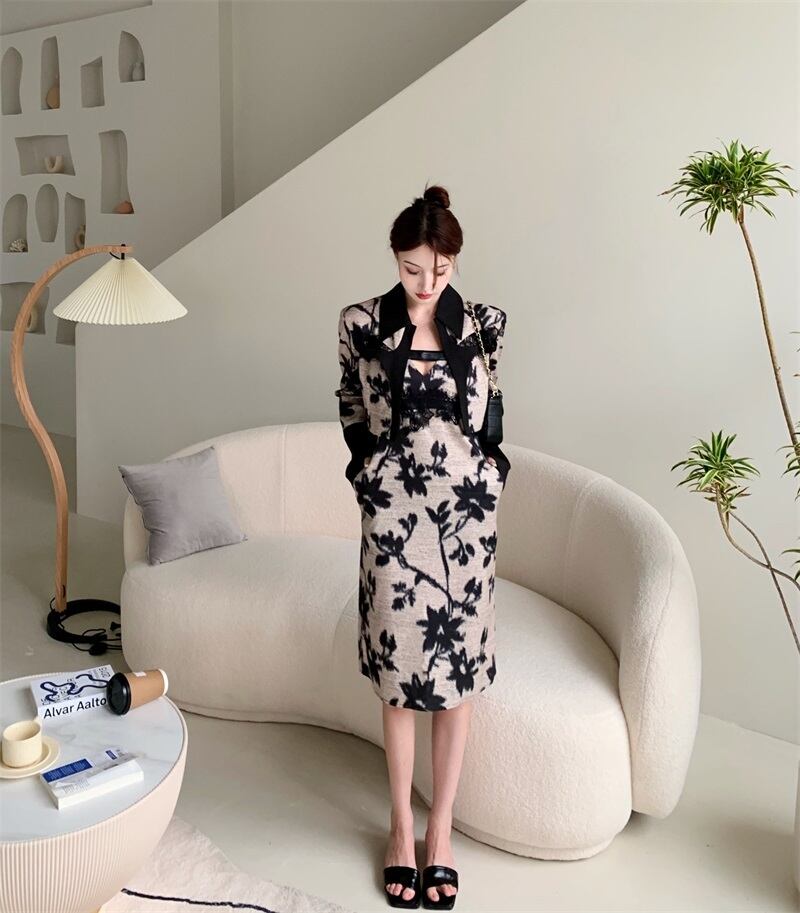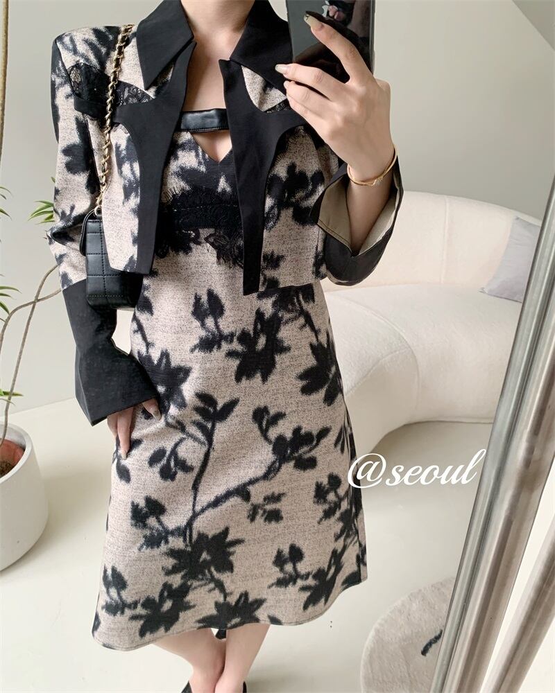 スタンダードプリント柄ショートコート 薄手ドレス ロング レトロ Xiaofeijia29306359756
