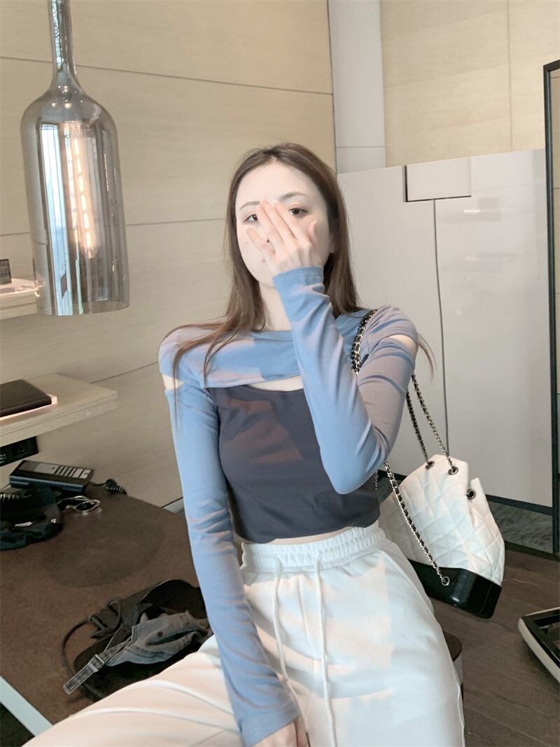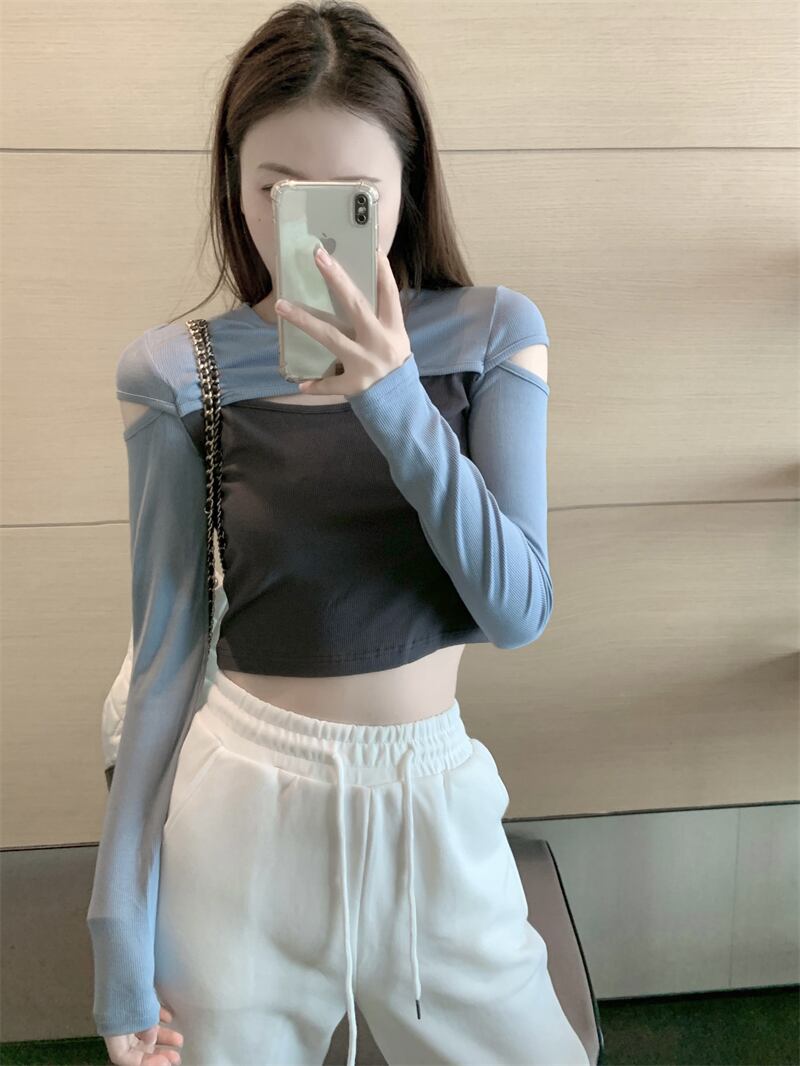 パールカラーショートTシャツ トップス ロング オフショルダー 真珠 Xiaofeijia185133743