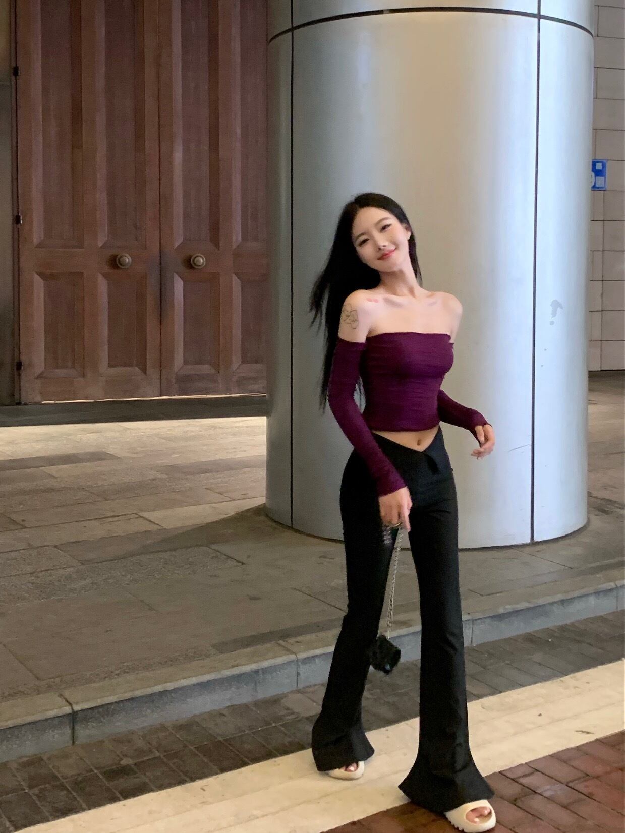 ホワイトストラップレス長袖スリーブトップス ロング パープル Xiaofeijia41738109346
