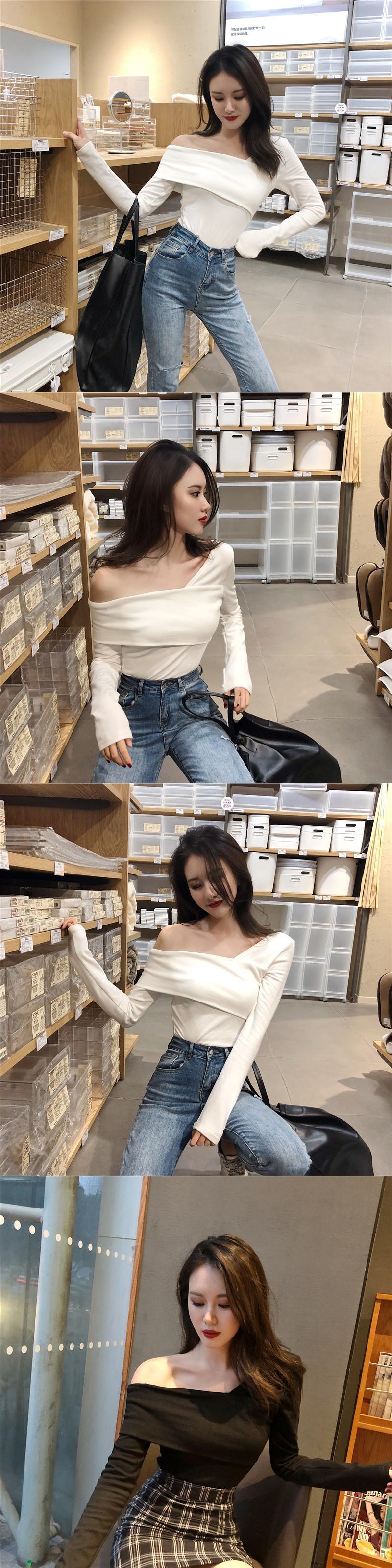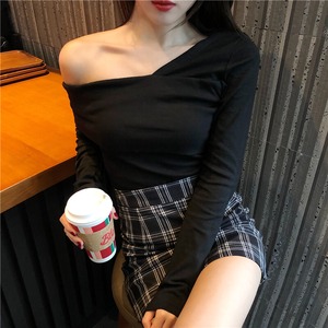 オータムショートトップス レディーススリムTシャツ シャツ ホワイト ロング 秋物 Xiaofeijia97480131574