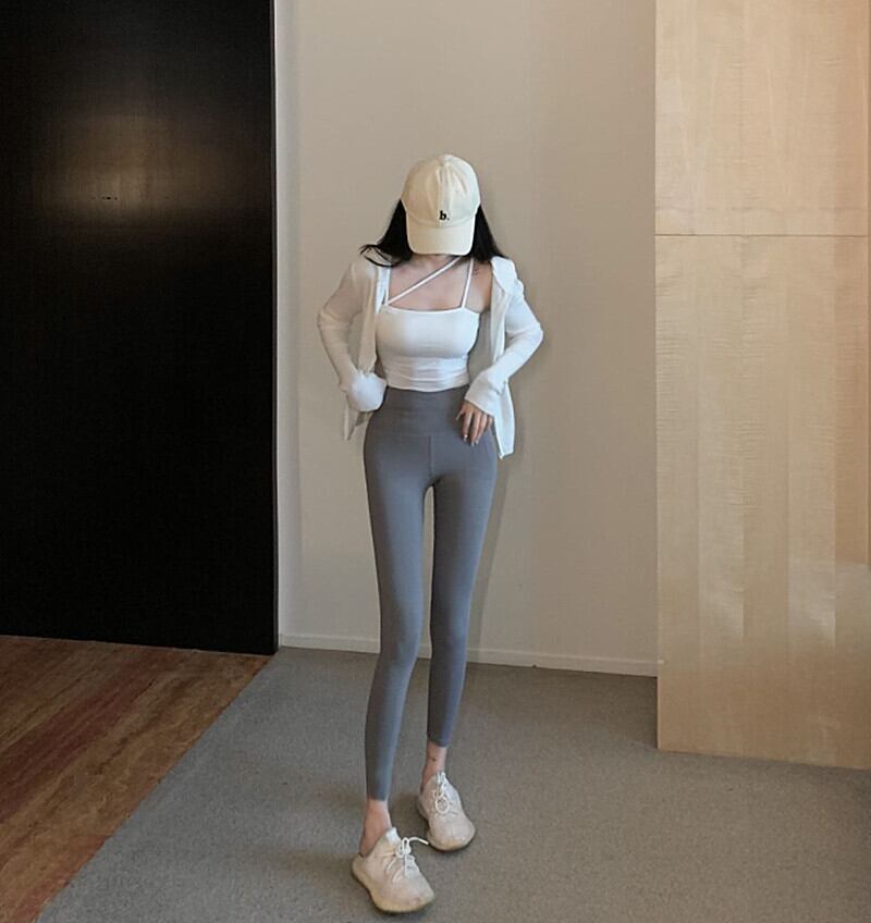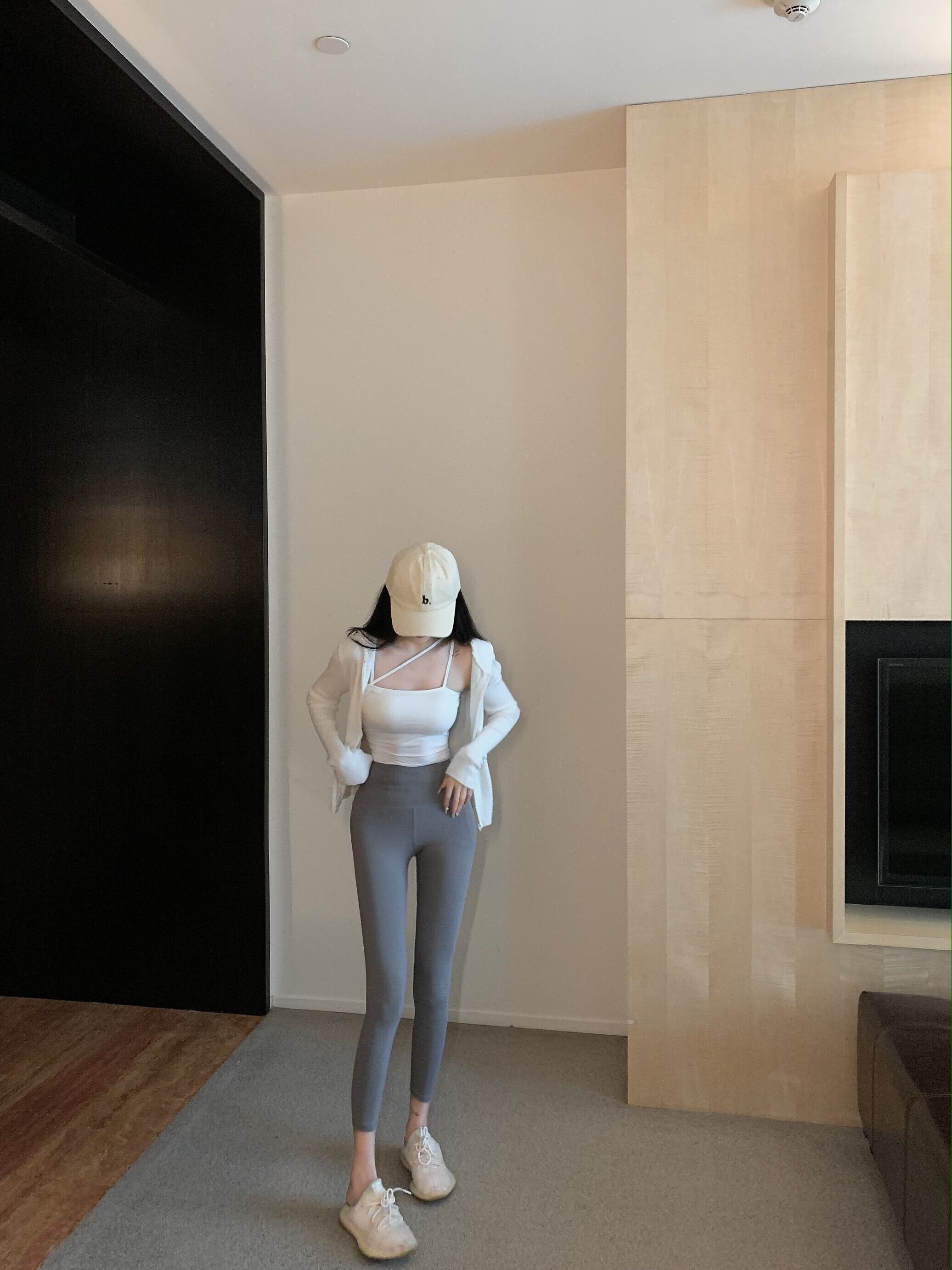色:カーディガンジャケット,白い中,グレーのレギンス