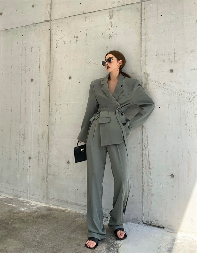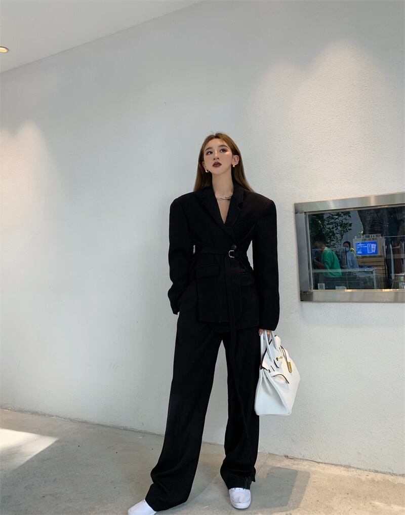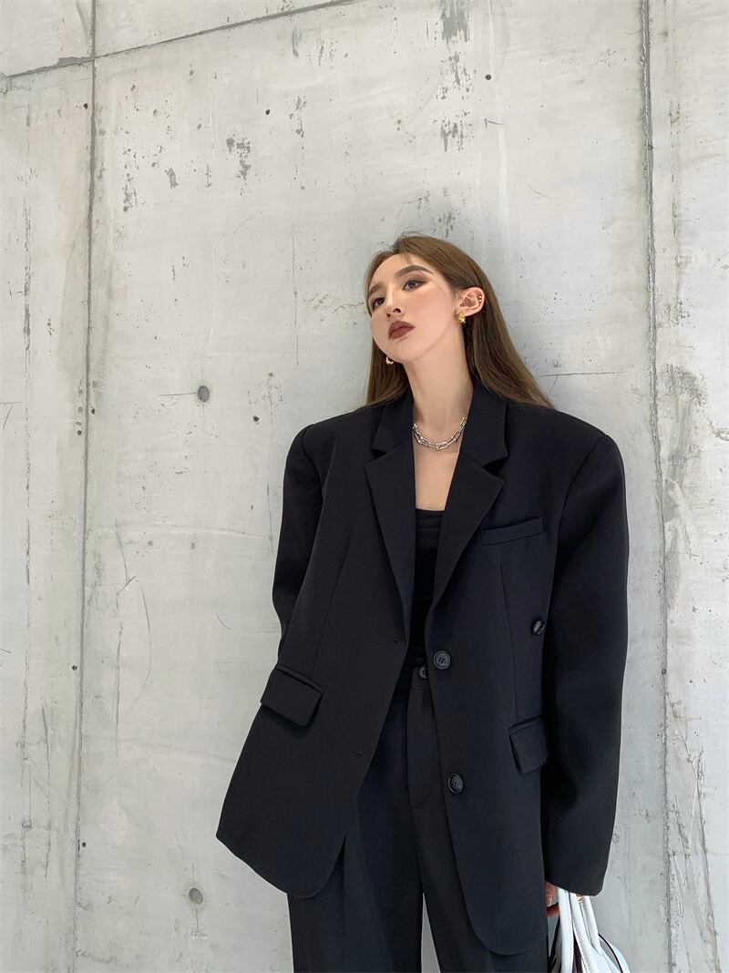スタンダードルーズジャケット ハイウェストウェストワイドレッグパンツ レトロ ワイドパンツ Xiaofeijia85302334072