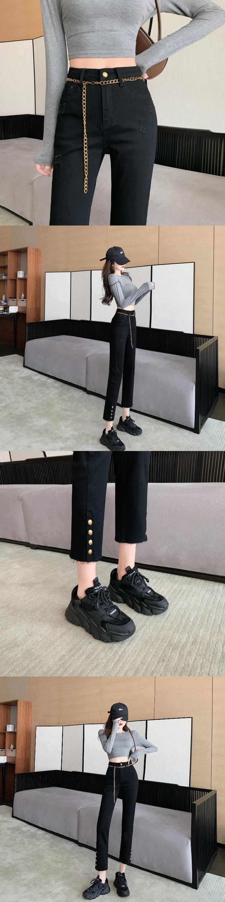 オータムゴールドバックルウェストチェーン ジーンズ パンツ 秋物 Xiaofeijia28747782524