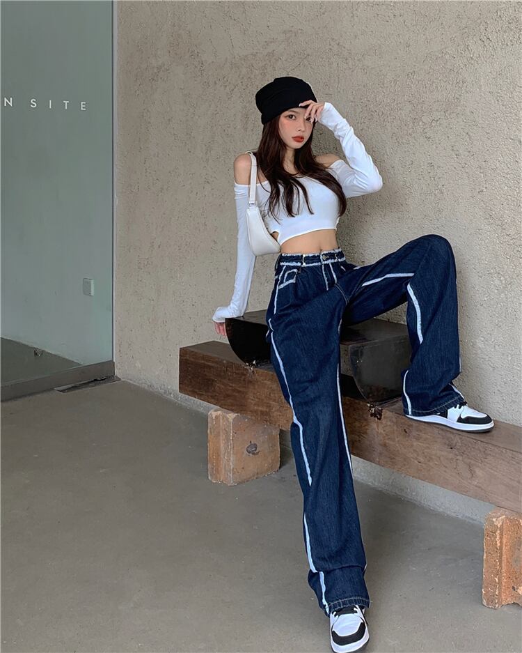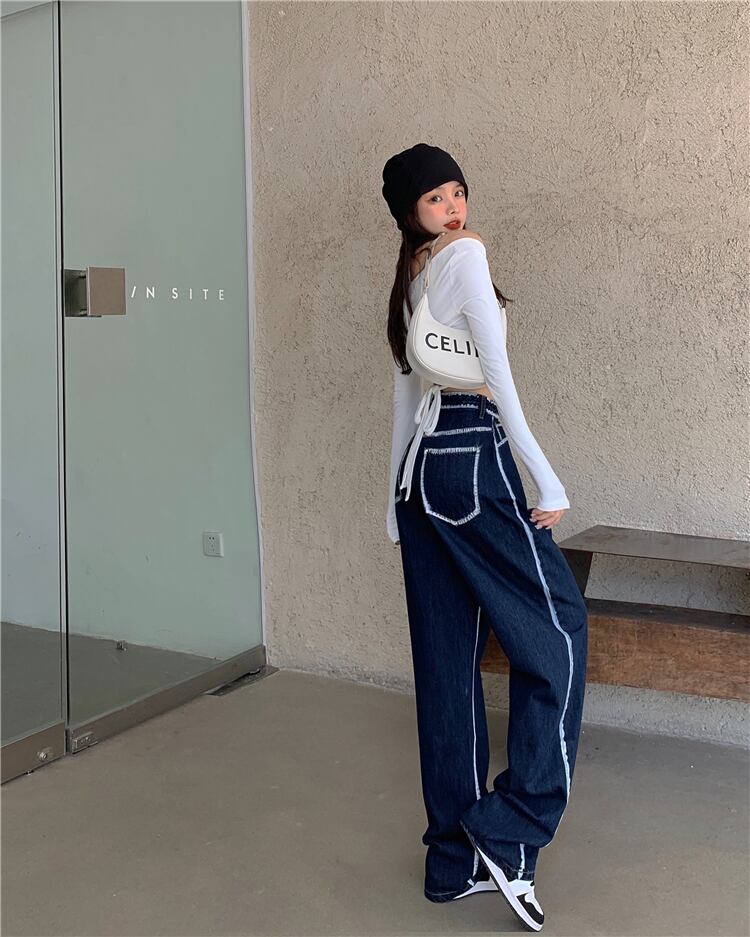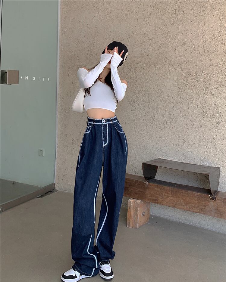 スタンダードジーンズ オータムカラーハイウェストパンツ ルーズ レトロ 秋物 Xiaofeijia77504770797