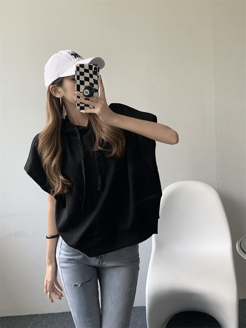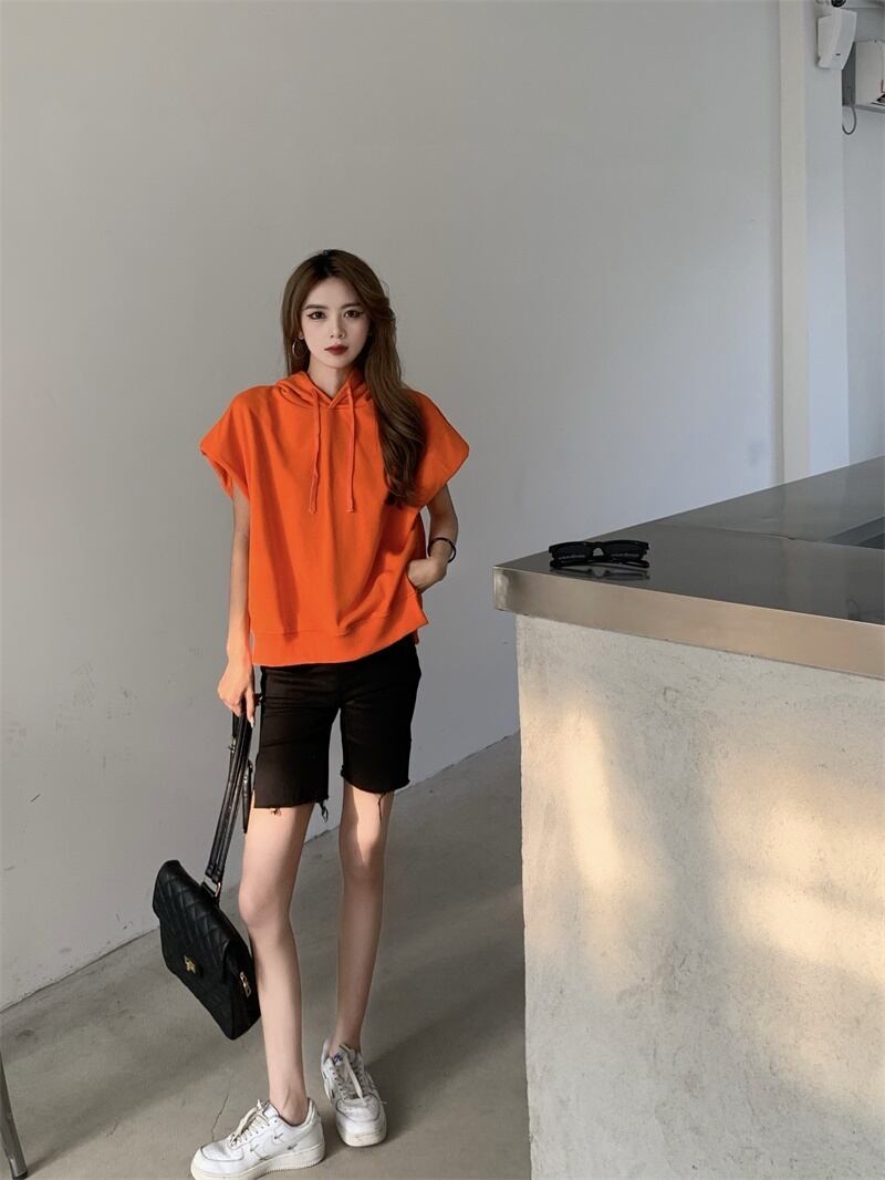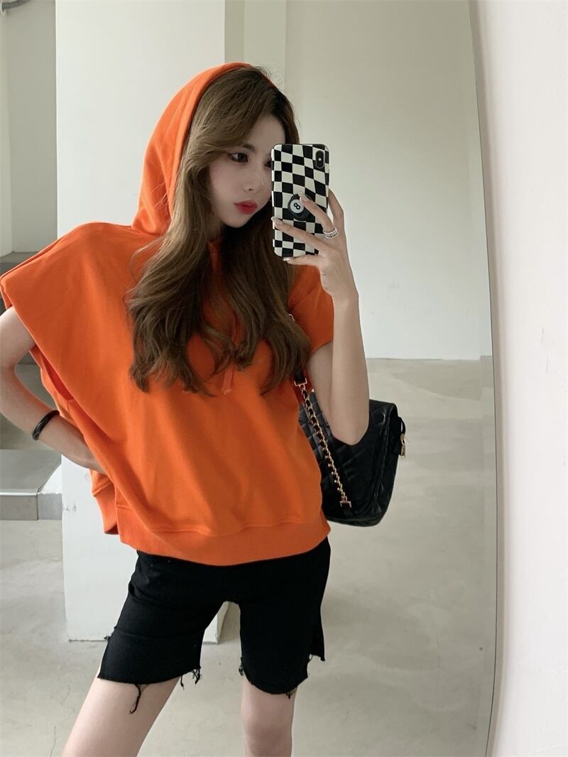 オータムルーズソリッド カラーフードノースリーブセーター トップス 秋物 ソリッドカラー Xiaofeijia87378151898