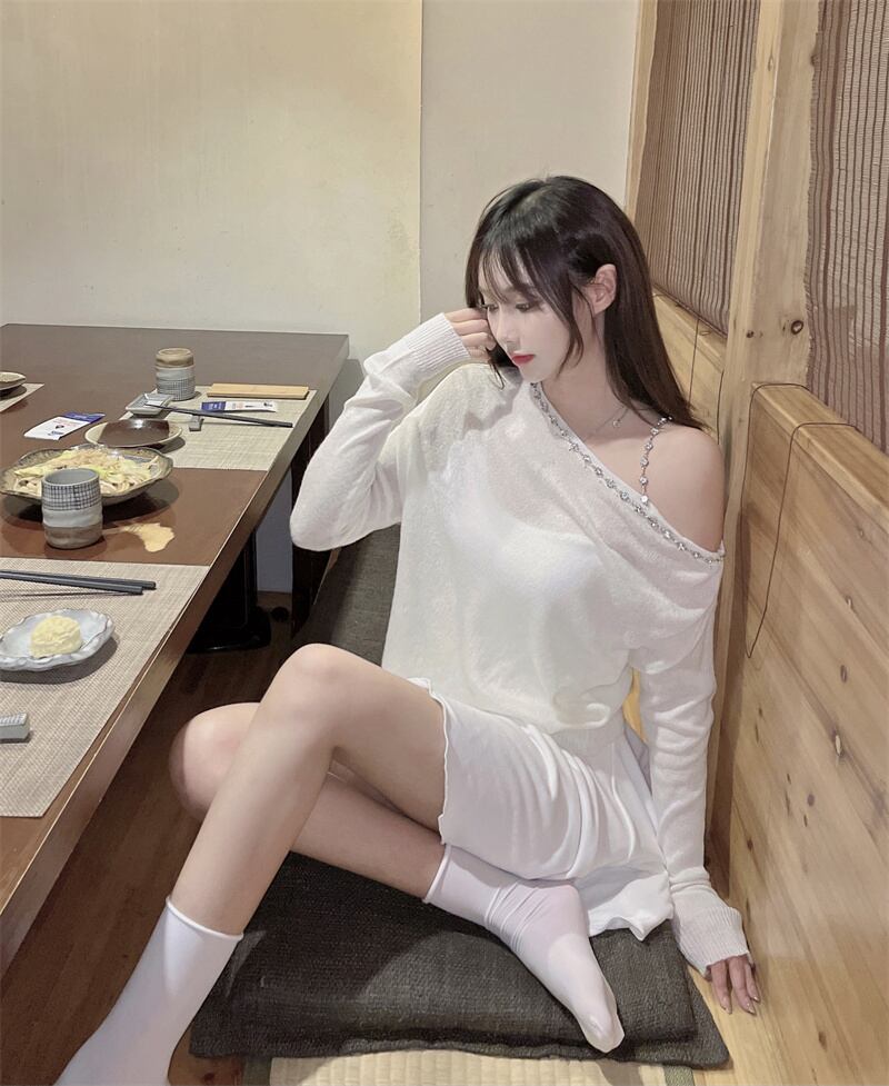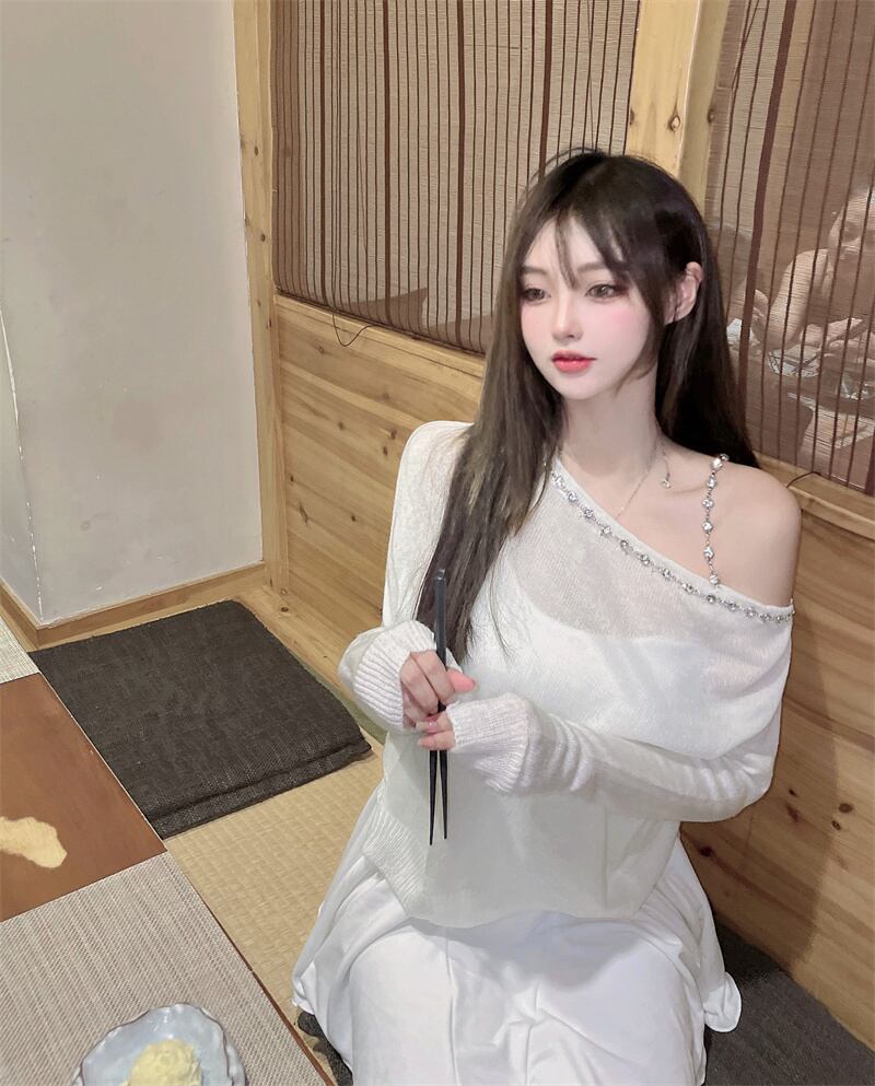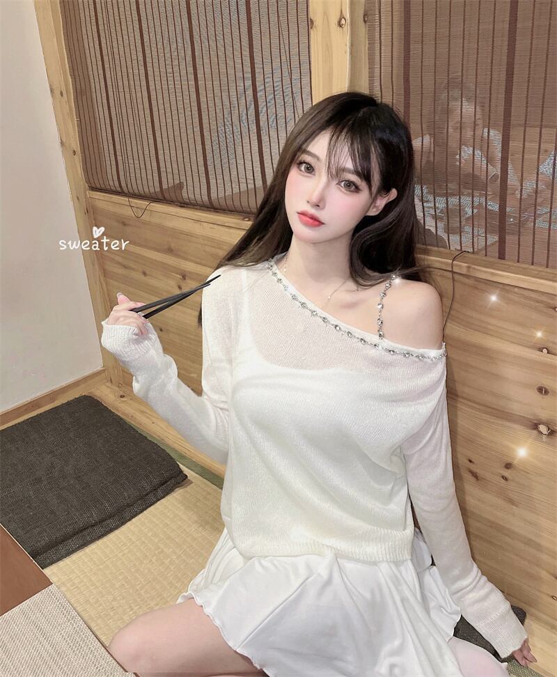 スタイルルーズラインストーンセーター トップス レディース Xiaofeijia24994246879