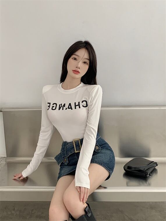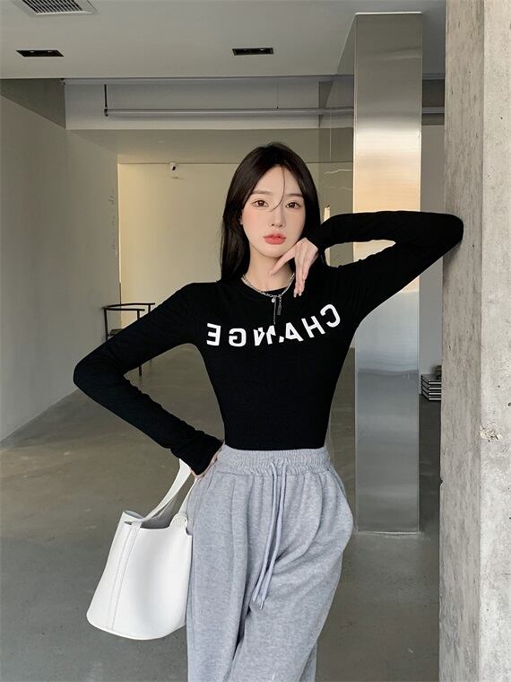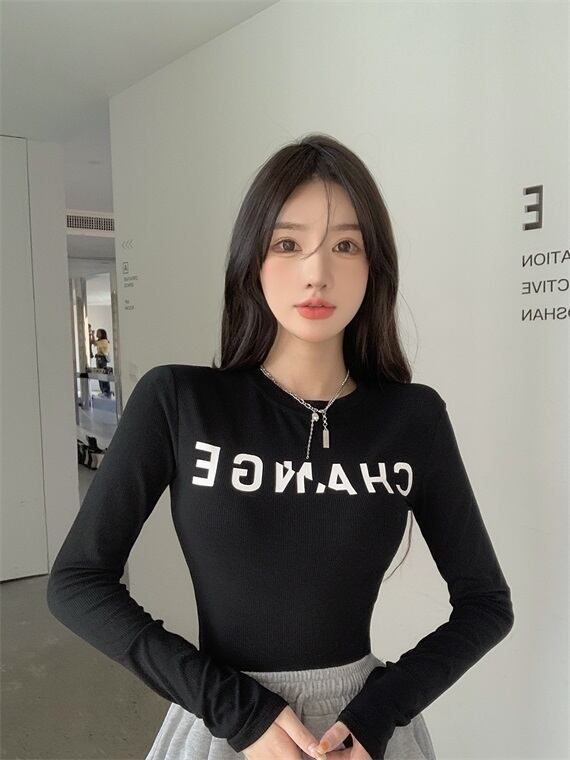 オータムウィンターシャツ 薄手Tシャツ プリント柄 ロング 秋物 冬物 Xiaofeijia46614424904