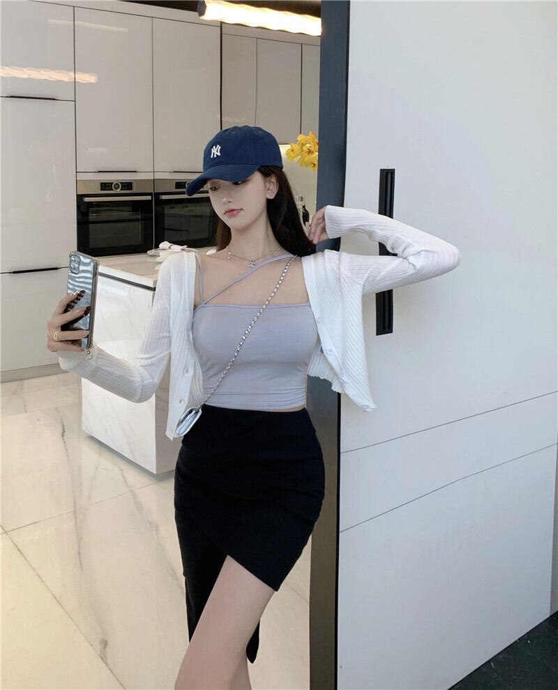色:白いベスト,ライトブルーのベスト,スモッググレーカーディガン,白いカーディガン,ブラックニットスカート