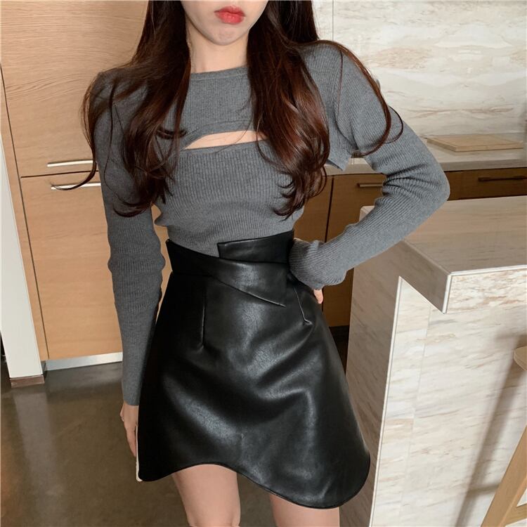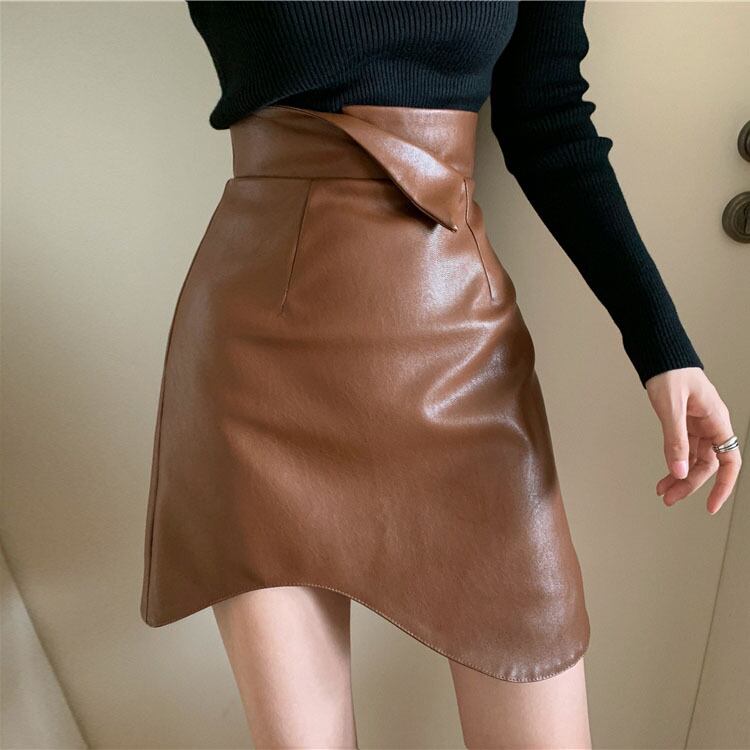 ハイウェストウェストスカート Aラインレザーレディース Xiaofeijia7260623477