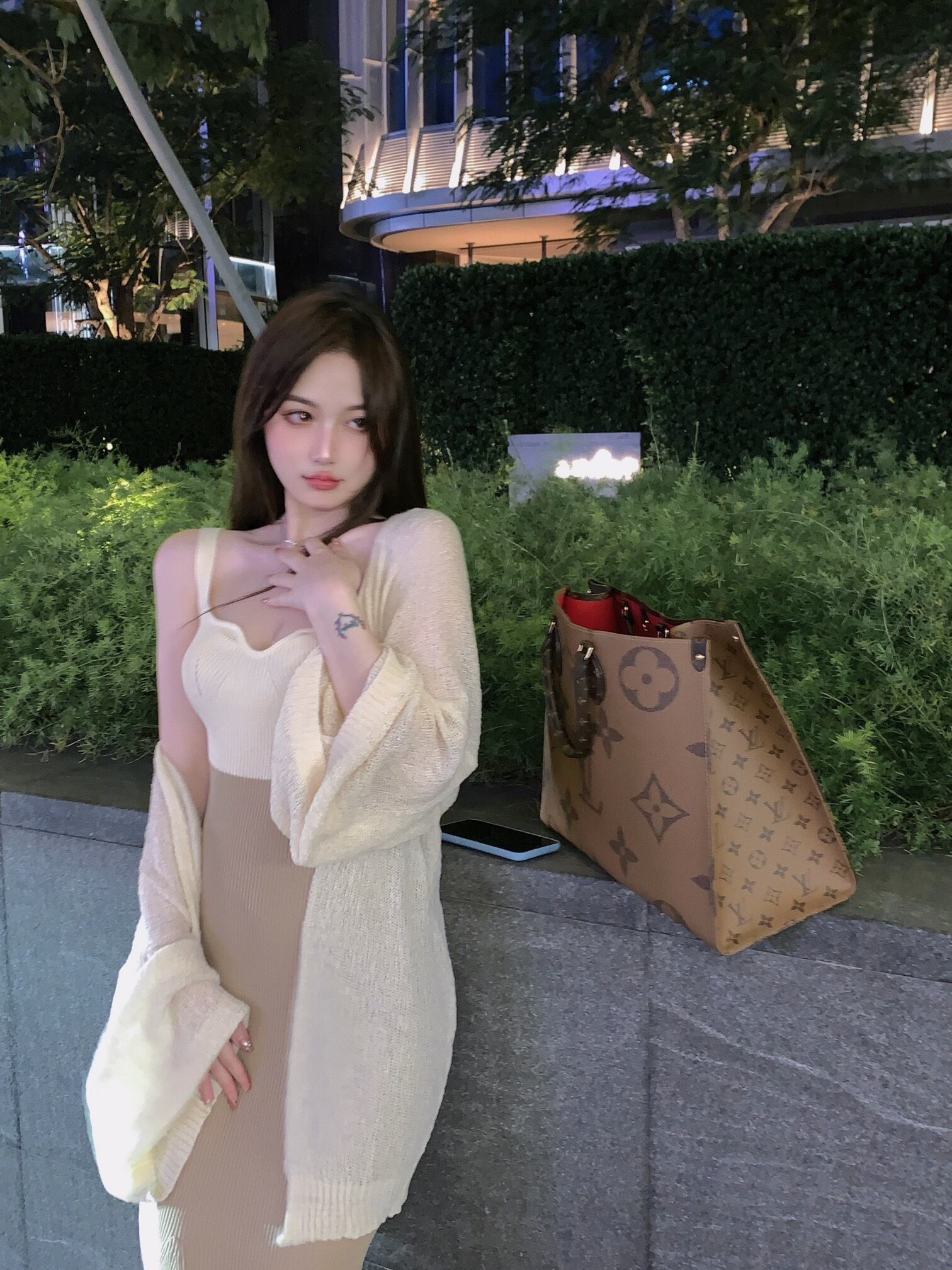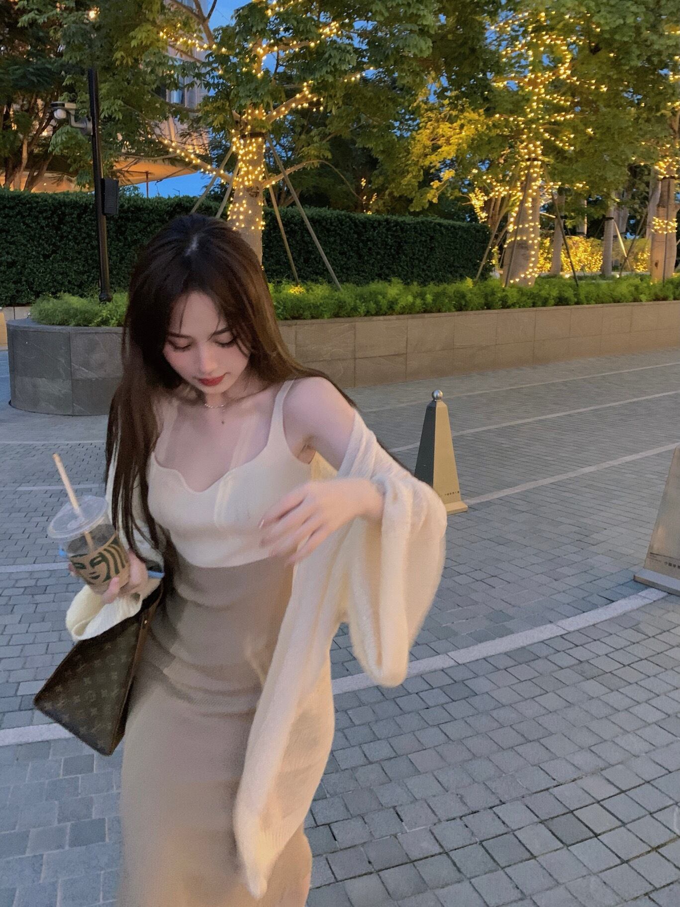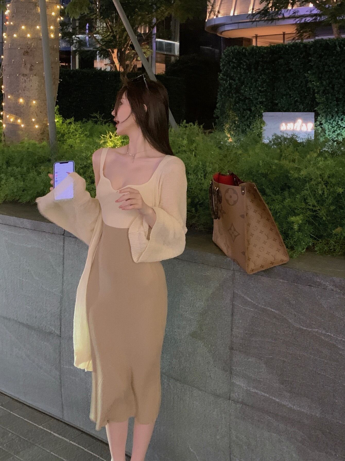 長袖スリーブニットカーディガンオータムトップス セーター ジャケット スカート ロング 秋物 Xiaofeijia71420040746