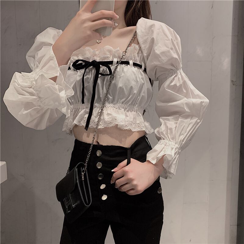 色:白のシャツ,ブラックベルボトム