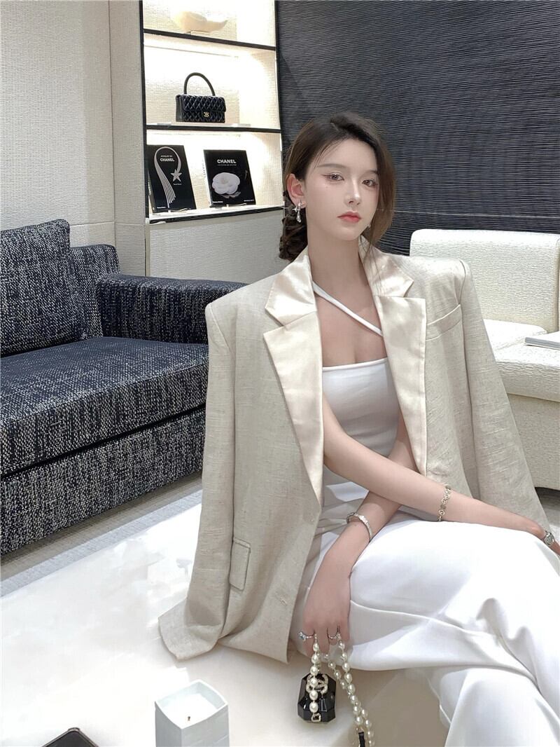 カジュアルルーズ薄手ブレザー トップス ロング Xiaofeijia79396520912