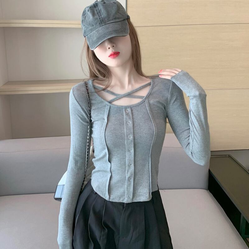 レッドスリムTシャツ トップス ロング Xiaofeijia26629117649