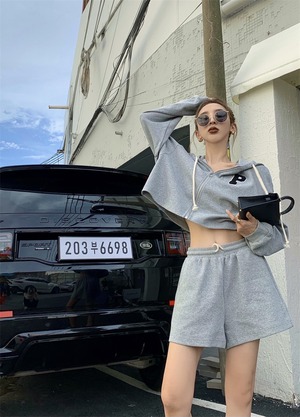 ルーズフードトップス ハイウェストウェストショーツ ブルマー Xiaofeijia45184724559