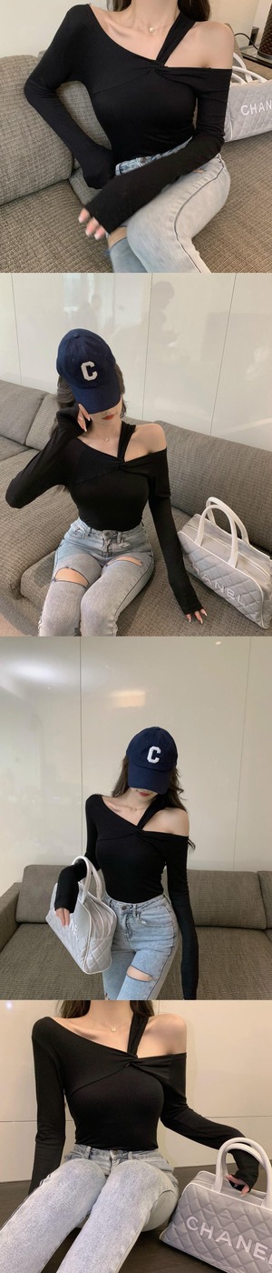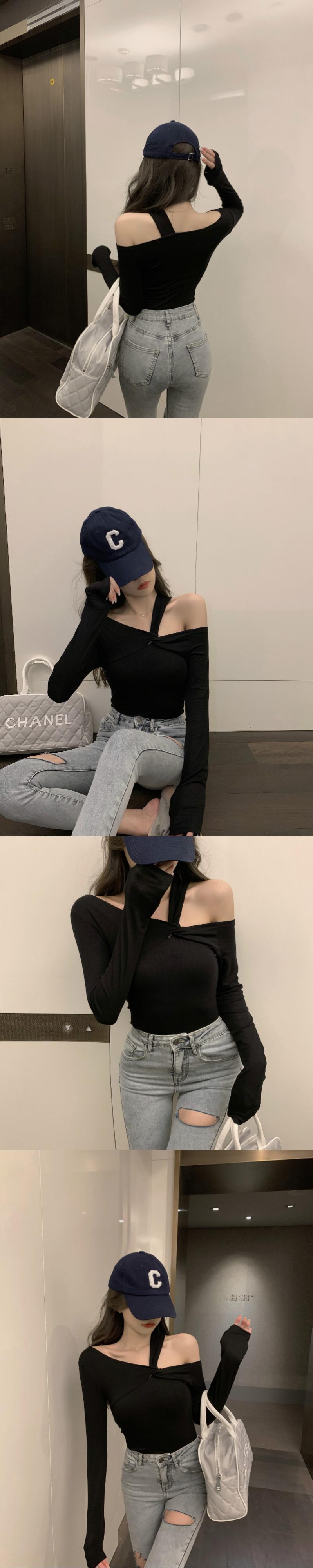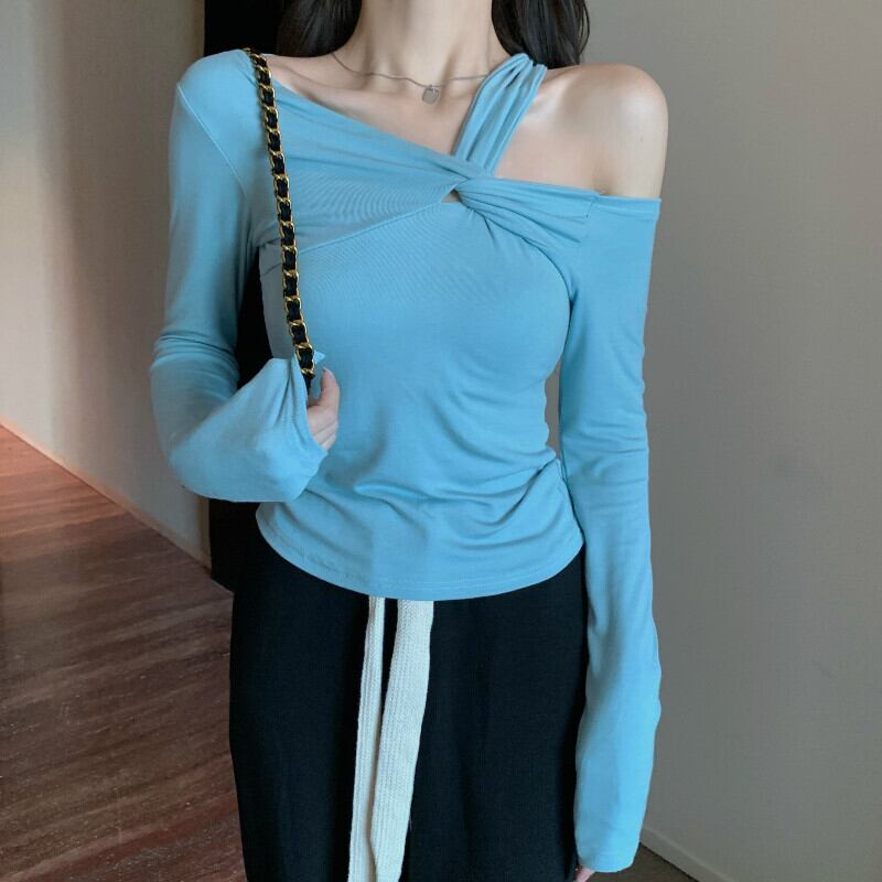 スタイルオータムシャツ スリムTシャツ トップス レディース ロング 秋物 オフショルダー Xiaofeijia78030550788