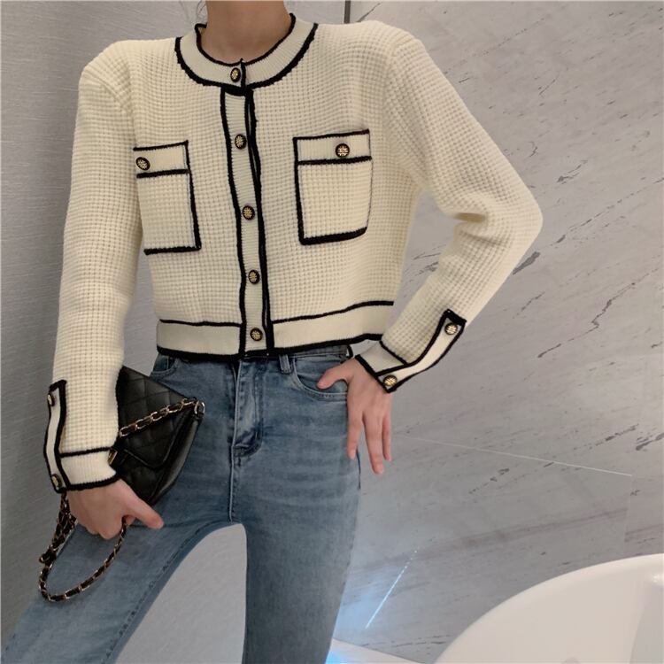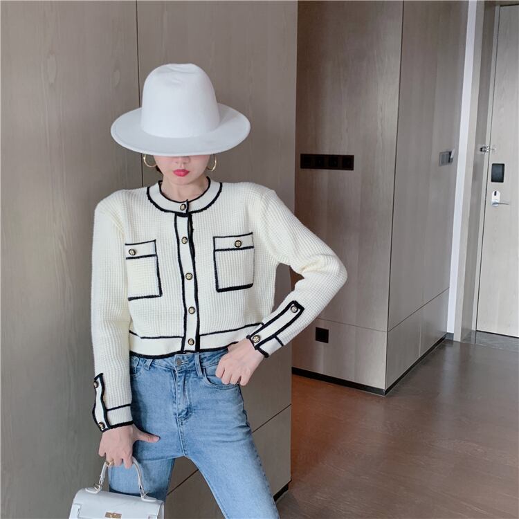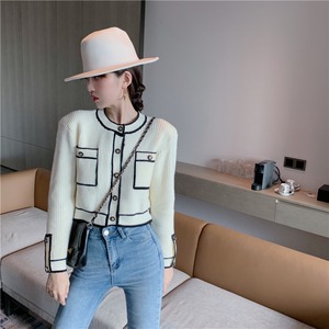 スタイルジャケット カラーニットカーディガン薄手ルーズセーター ショートオータム ロング 秋物 Xiaofeijia34191213657