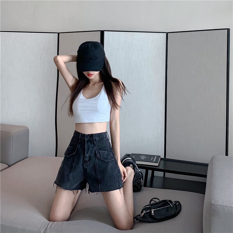 ウェストサマースタイルルーズポケットワイドレッグショーツ レディース 夏物 ブルマー ワイドパンツ Xiaofeijia60674778320