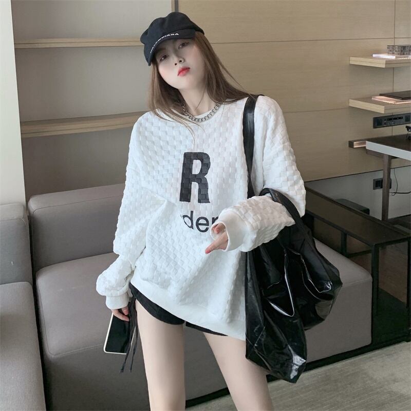 オータムラウンドネックトップス プリントセーター ルーズスタイル ロング 秋物 Oネック Xiaofeijia7367666054
