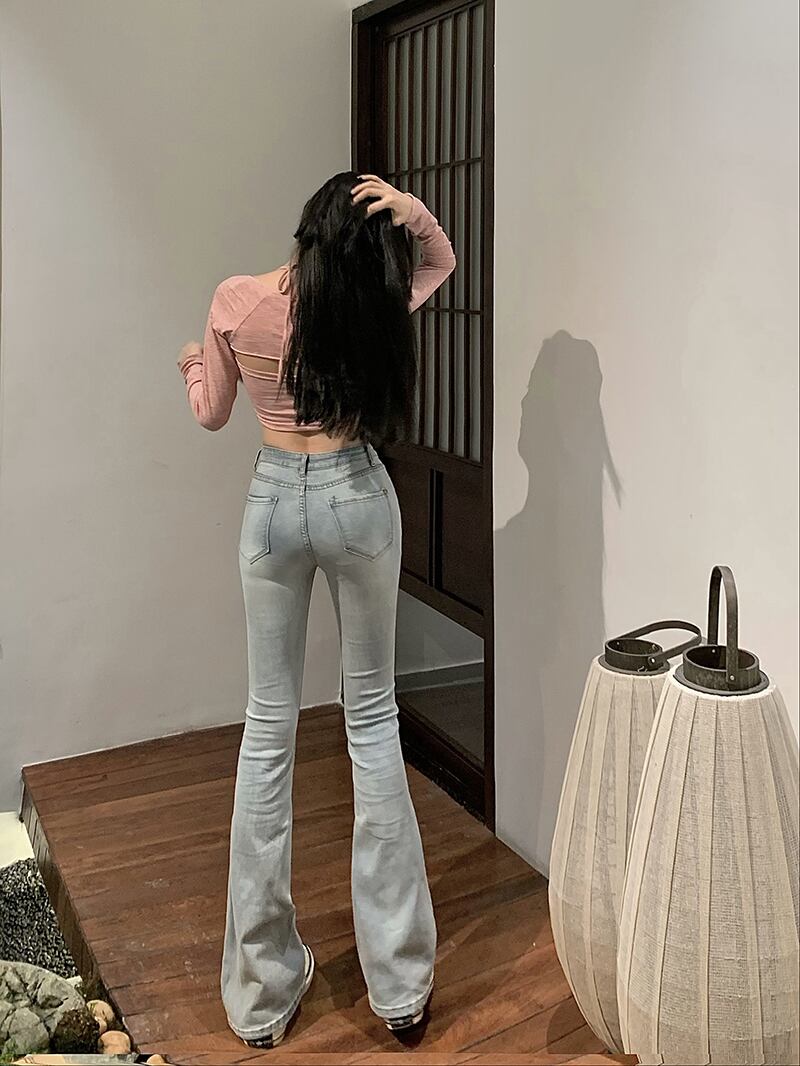 ハイウェストブルージーンズ オータムパンツ 秋物 Xiaofeijia2359989565