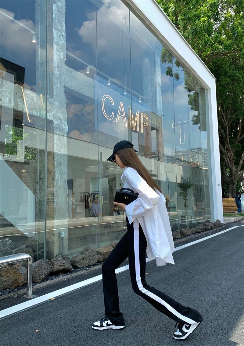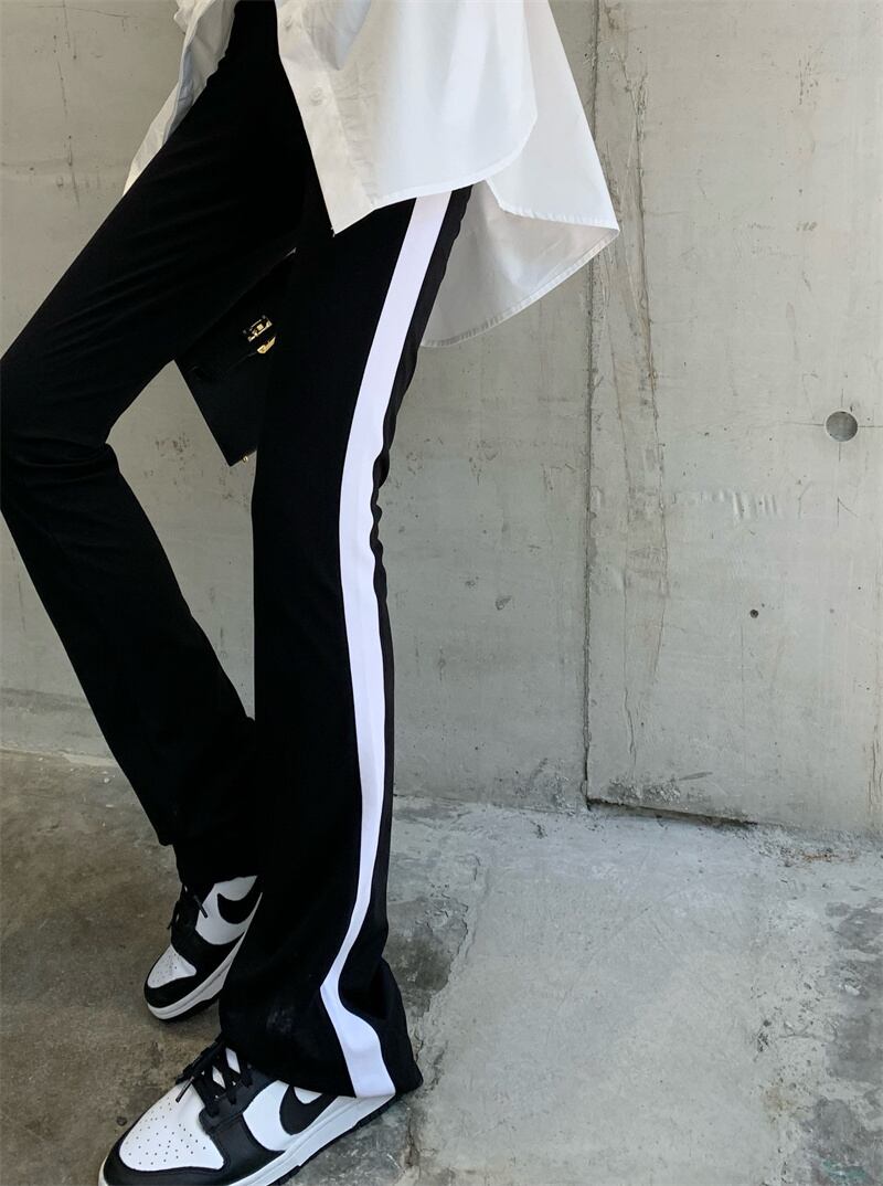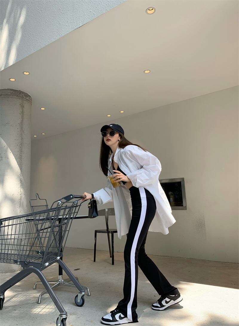 ルーズカジュアルシャツ ストレッチパンツ ブラック レッド エラスティック 伸縮 Xiaofeijia65074324311