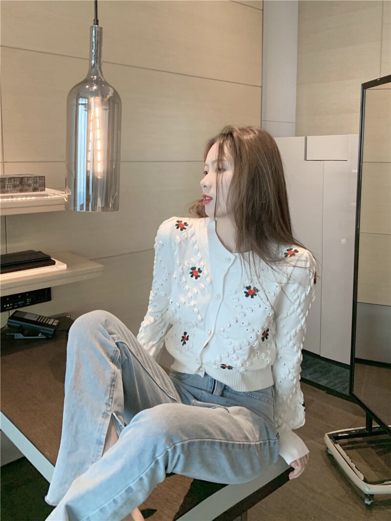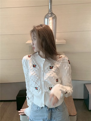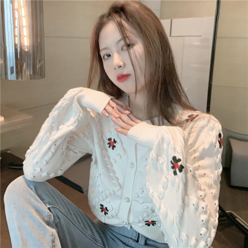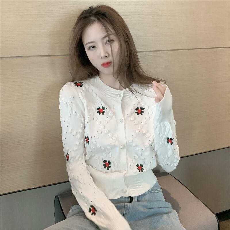 オータムFlowerデザイン 刺繍カーディガンルーズニットセーター コート ロング 秋物 フラワーデザイン Xiaofeijia13713496051