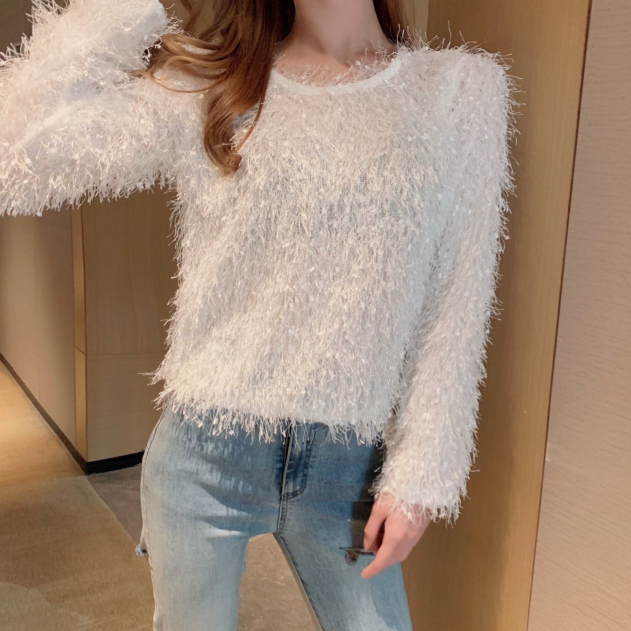 オータムルーズショートニットトップス 秋物 Xiaofeijia77286203983