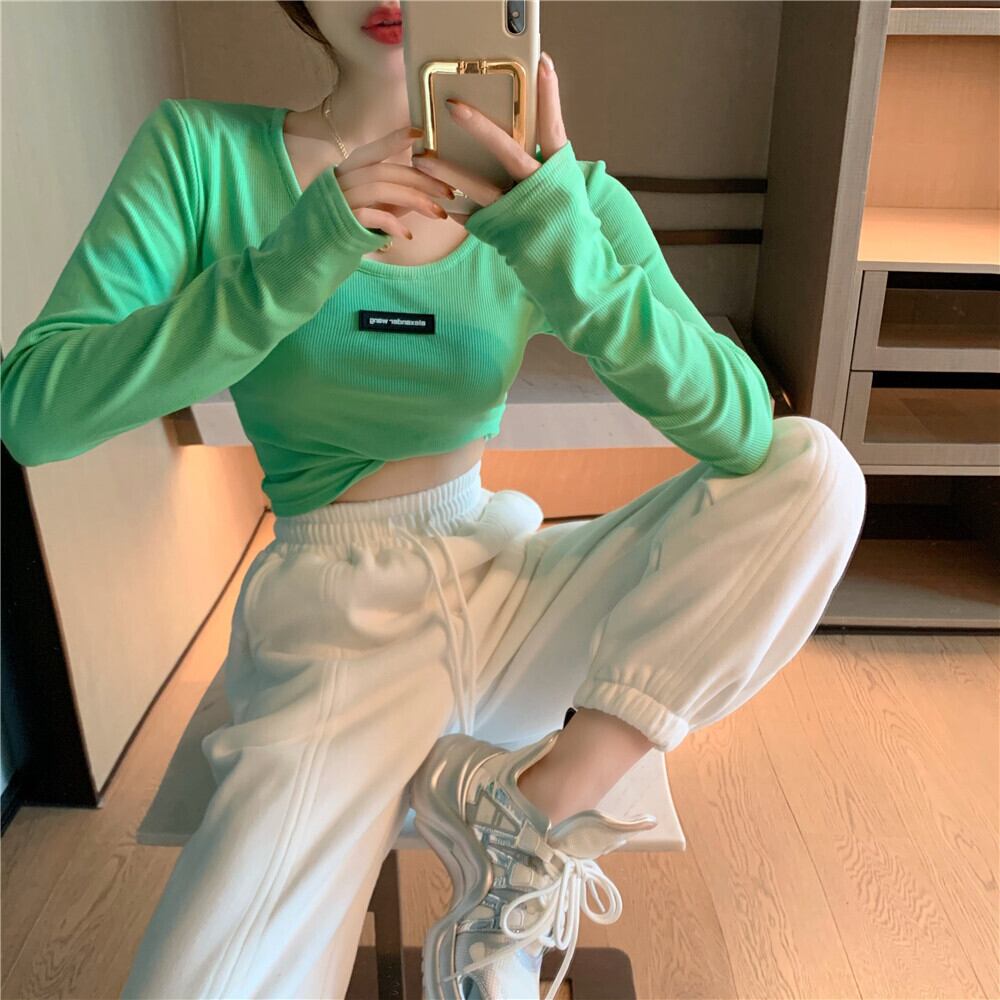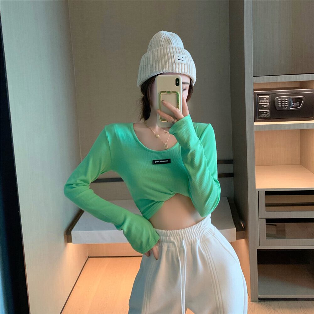 Tシャツ シャツ オータムクロップドトップス ロング 秋物 Xiaofeijia54107355678