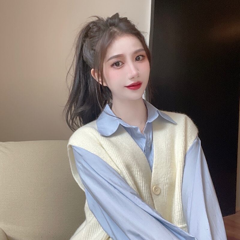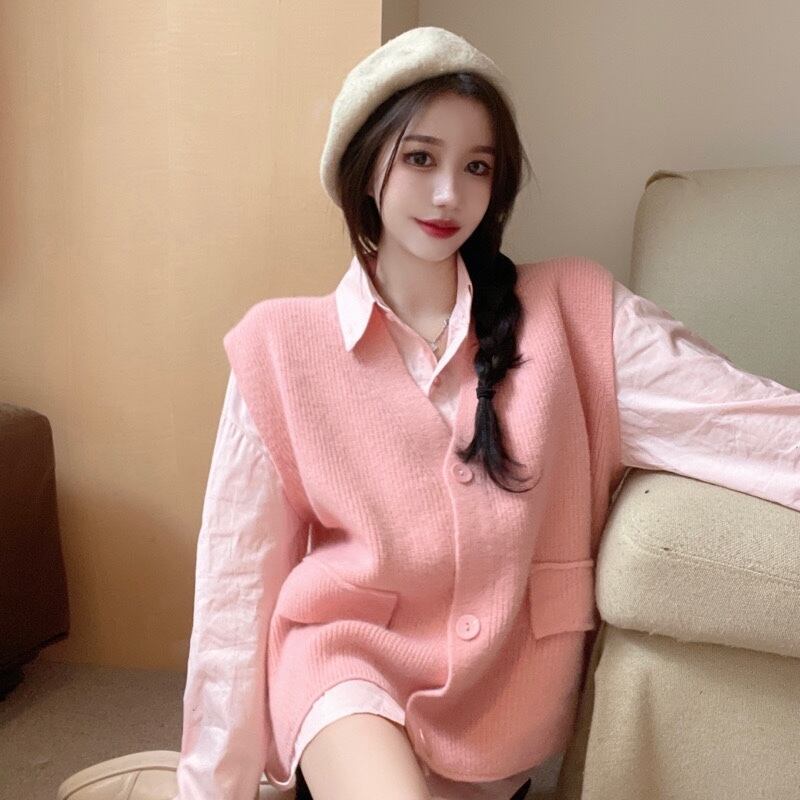 色:ピンクの毛皮のベスト,アプリコットの毛皮のベスト,ピンクのシャツ,青いシャツ