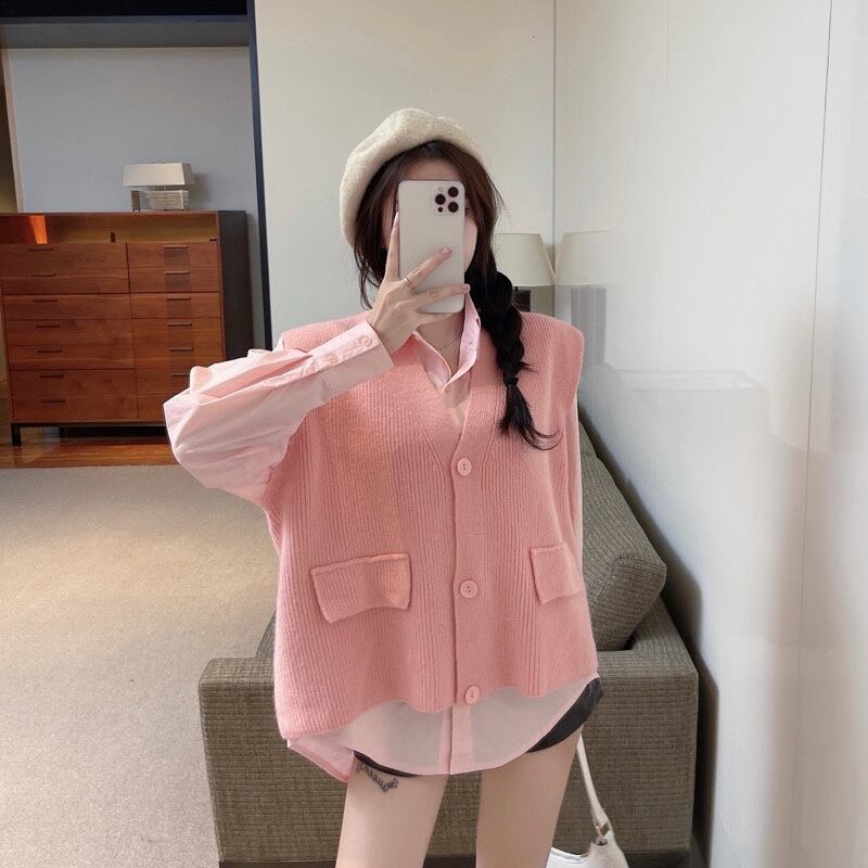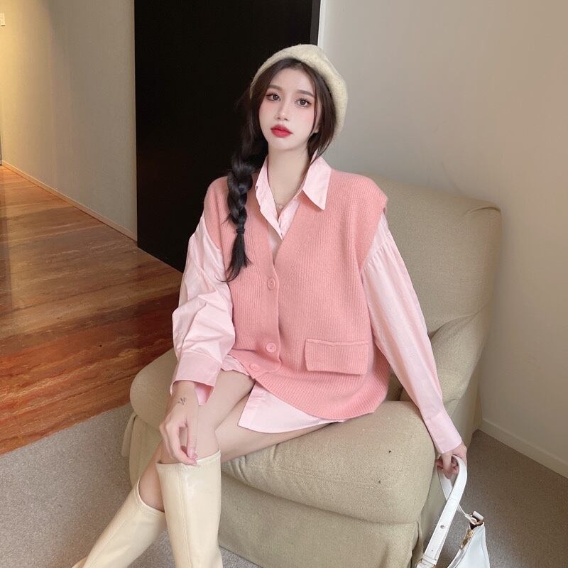 オータムニットセーター ピンク ブラウス 秋物 Xiaofeijia94026815808