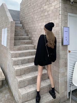 ルーズカラーセーター Tシャツ ロング レッド Xiaofeijia14962530752