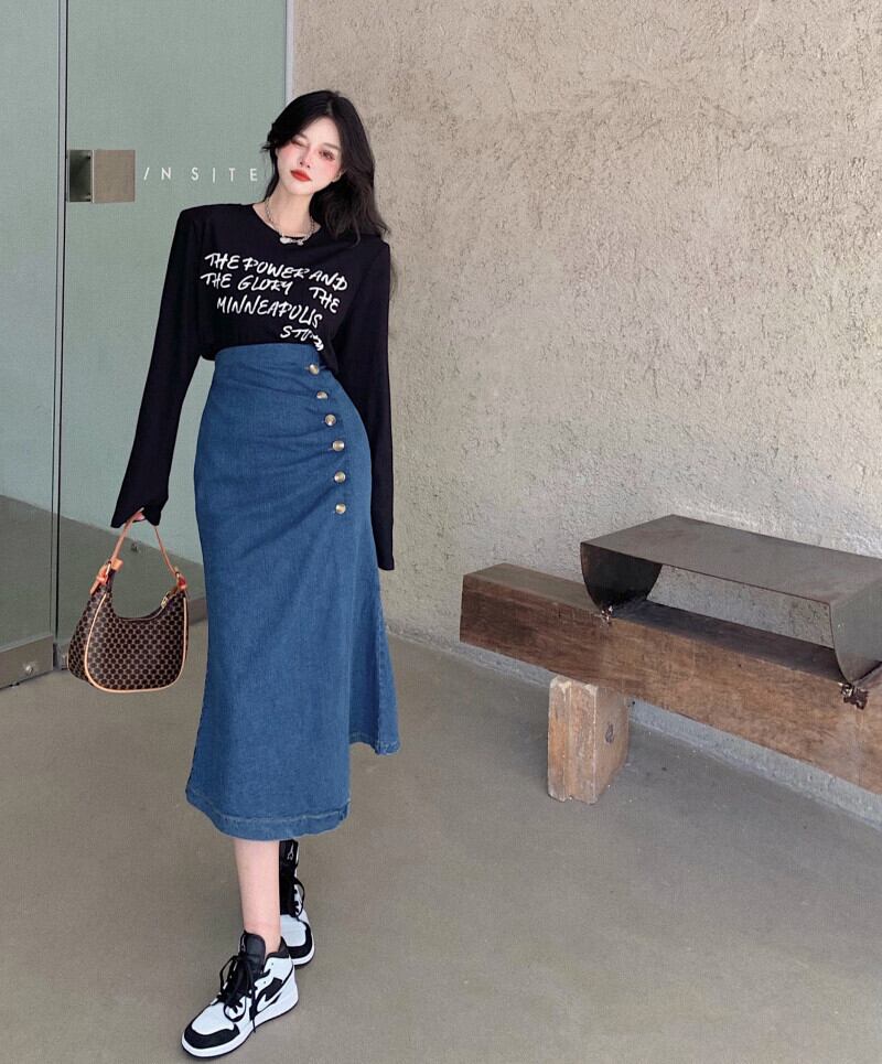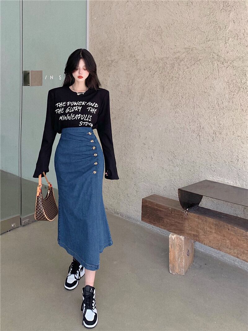 ウェストスカート オータムスタンダードプリーツAライン レトロ 秋物 Xiaofeijia10751985790