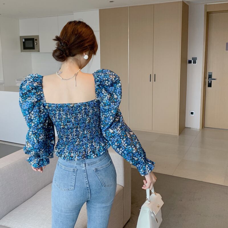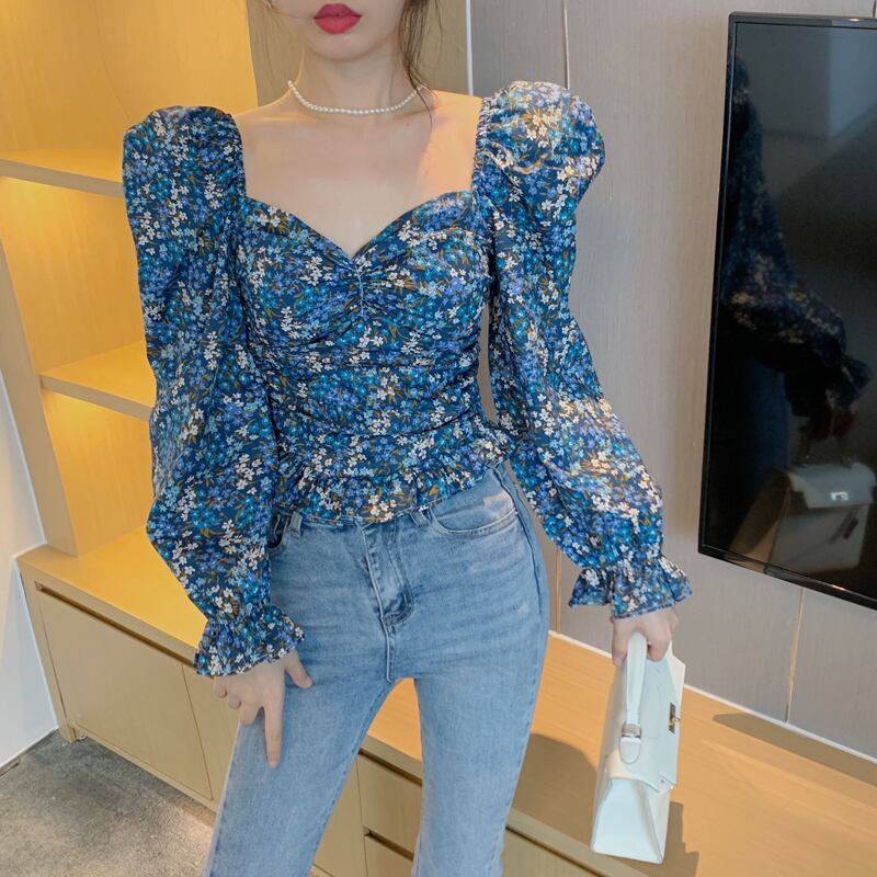 スタンダードスリーブフローラルシャツ レディーススタイルスリムブラウス レトロ 花柄 Xiaofeijia72473755996