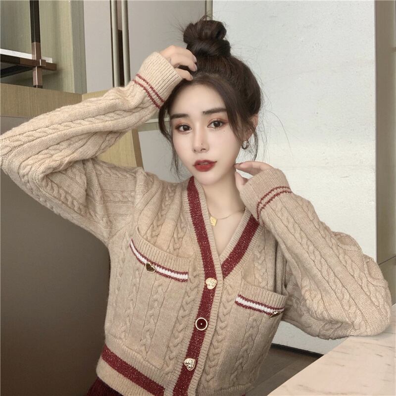 スタイルVネックストライプニットカーディガンジャケット セーター ロング 大人ガーリー スウィート キュート カジュアル Xiaofeijia69407806090