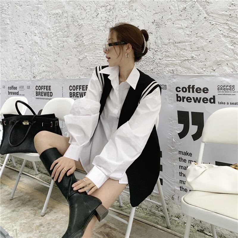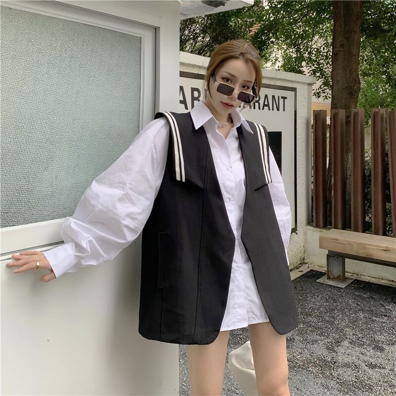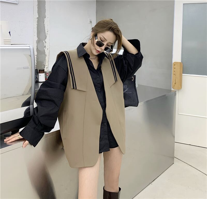 スタイルネイビーカラーオータムスリーブシャツ ルーズノースリーブジャケット 秋物 Xiaofeijia88732899045