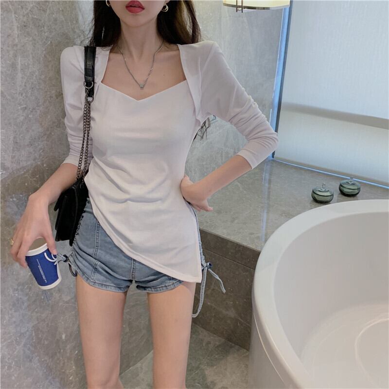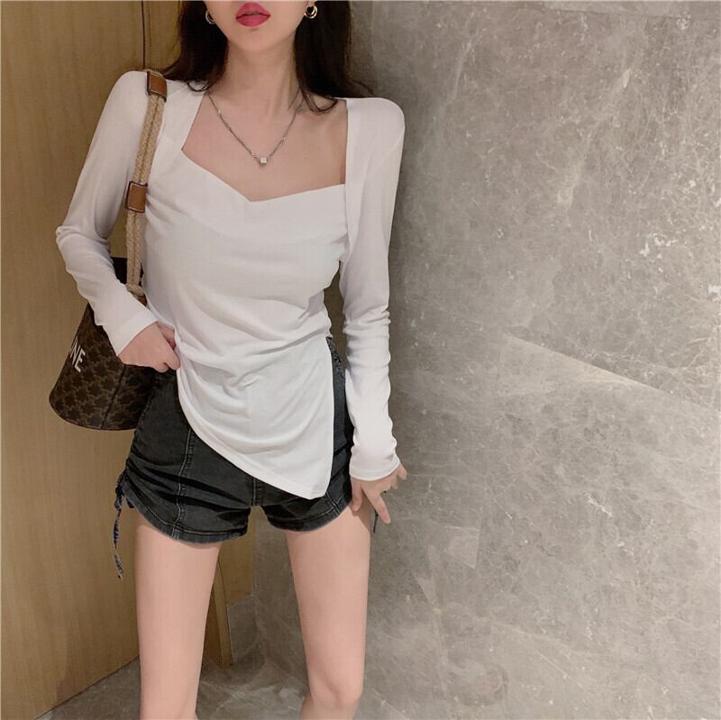 Tシャツ シャツ ショートスプリングオータムトップス ロング 春物 秋物 スクウェア Xiaofeijia90405896314