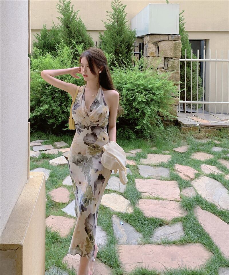 スカート オータムホルタードレス フローラルロング 秋物 花柄 Xiaofeijia41210005923