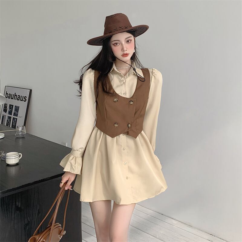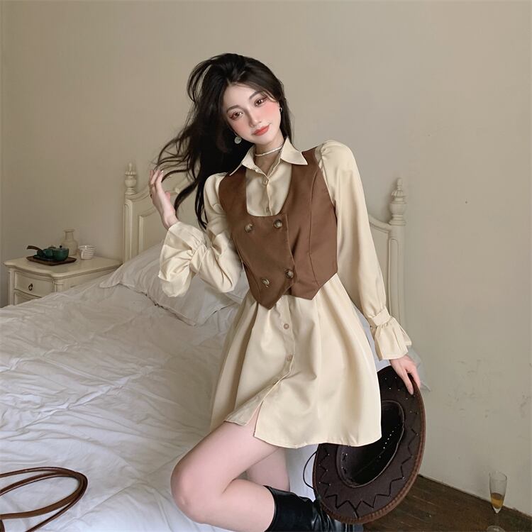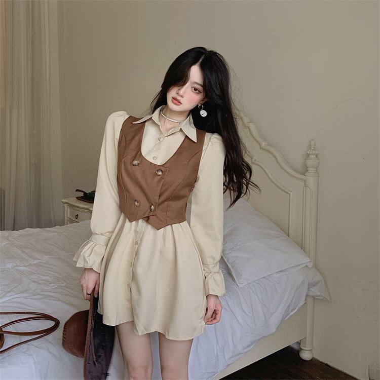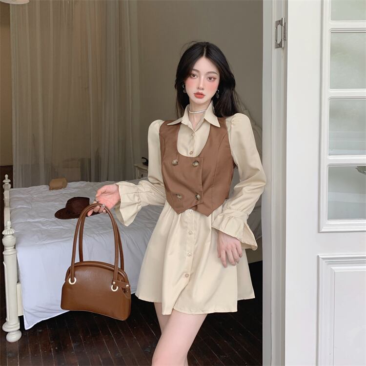 スタンダードショートジャケット Aラインスリムウェストドレス レトロ 大人ガーリー スウィート キュート カジュアル Xiaofeijia32796549731
