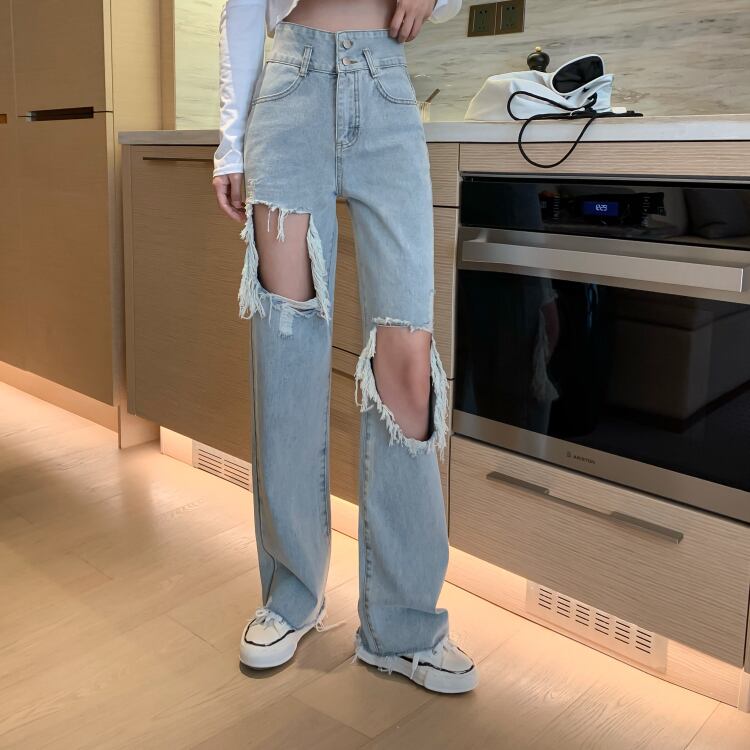 ハイウェストウェストジーンズ オータムスタイルパンツ 薄手ルーズ ストリート 秋物 Xiaofeijia32306835902