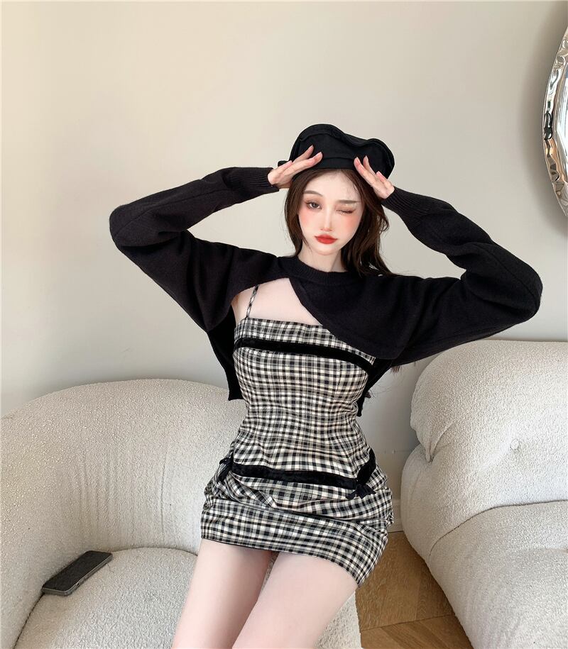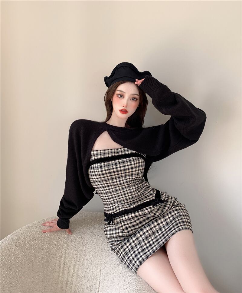 スタイルベルベットドレス オータムニットジャケット スカート リボン 大人ガーリー スウィート キュート カジュアル 秋物 Xiaofeijia93979625191