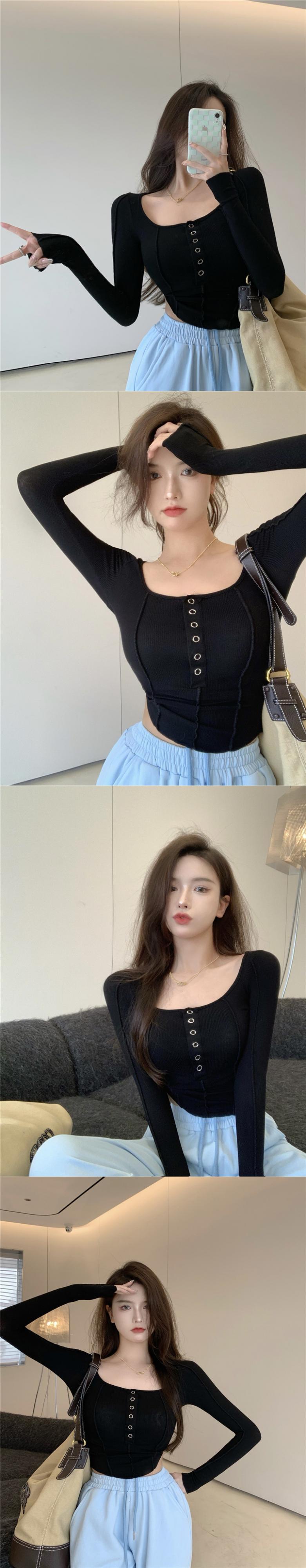 ラインスリムシャツ ラウンドネック Oネック Tシャツ ピュア スクウェア Xiaofeijia4296427256