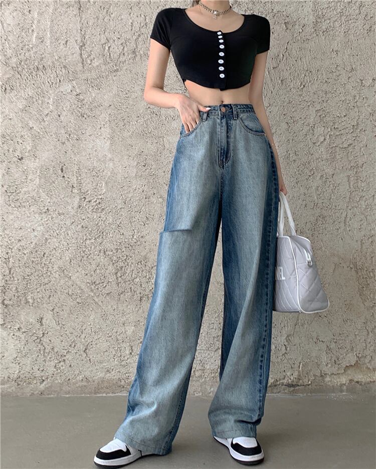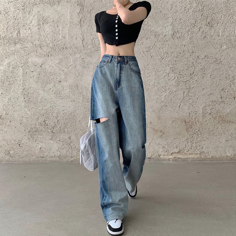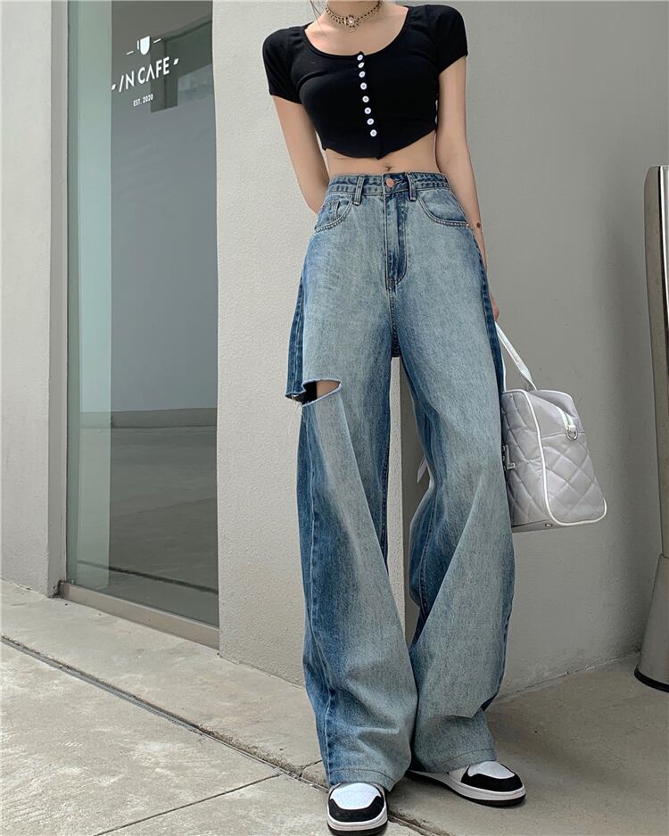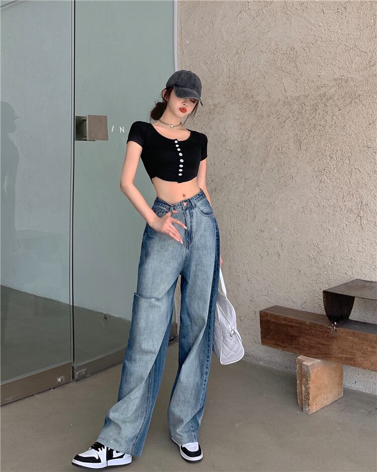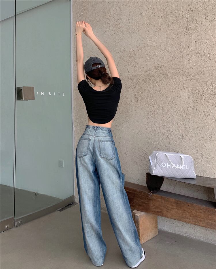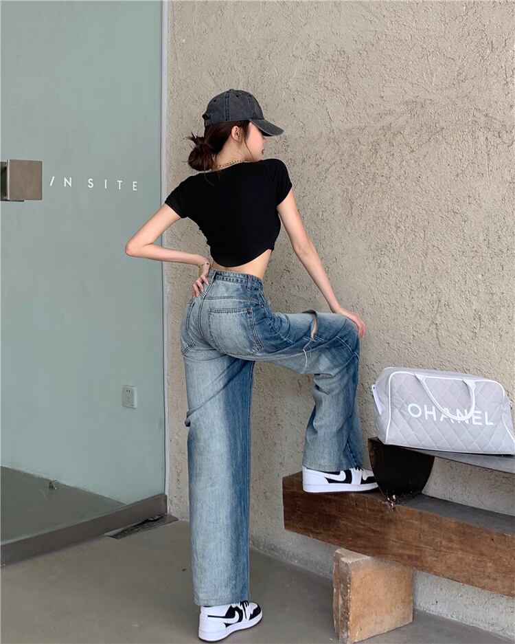 ジーンズ パンツ 薄手ルーズハイウェストウェストオータム 秋物 Xiaofeijia25127928175