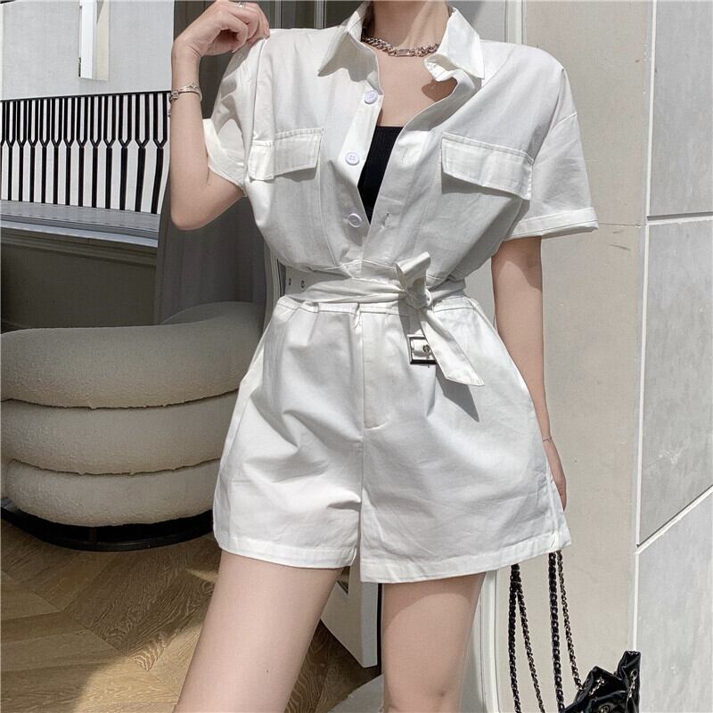 オーバーオール サマーウェストジャンプスーツ オールインワン ルーズハイウェストカジュアルショーツ 夏物 ブルマー Xiaofeijia68264905825
