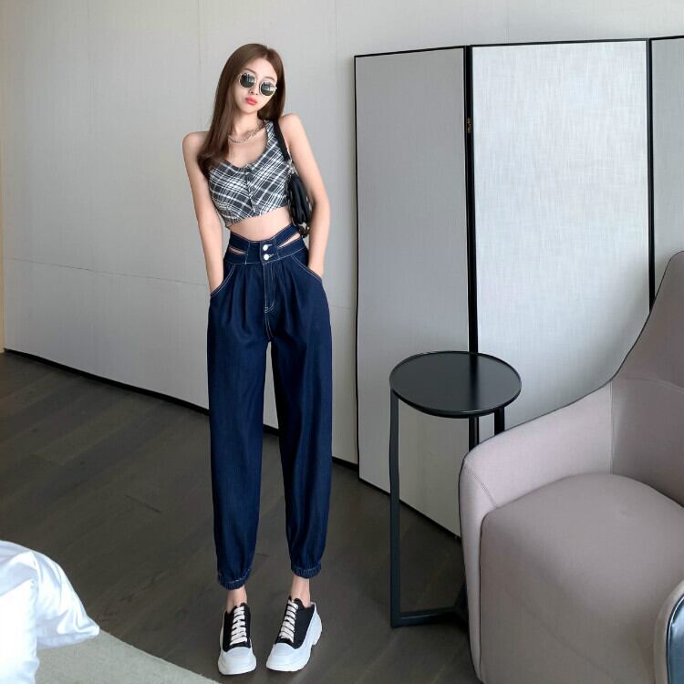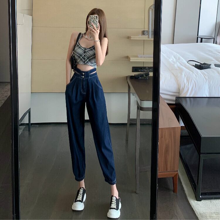 サマー薄手ハイウェストパンツ ルーズダークジーンズ レディース レッド 刺繍 夏物 Xiaofeijia93428483471