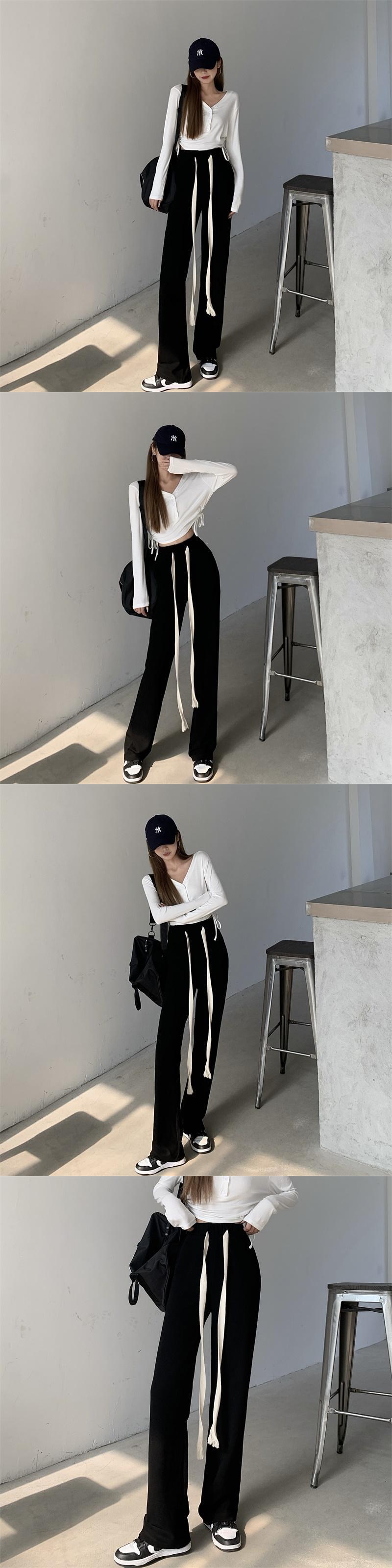 セット スリムショートギャザートップス カジュアルパンツ ハイウェストウェストワイドレッグ ワイドパンツ Xiaofeijia90869519867