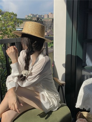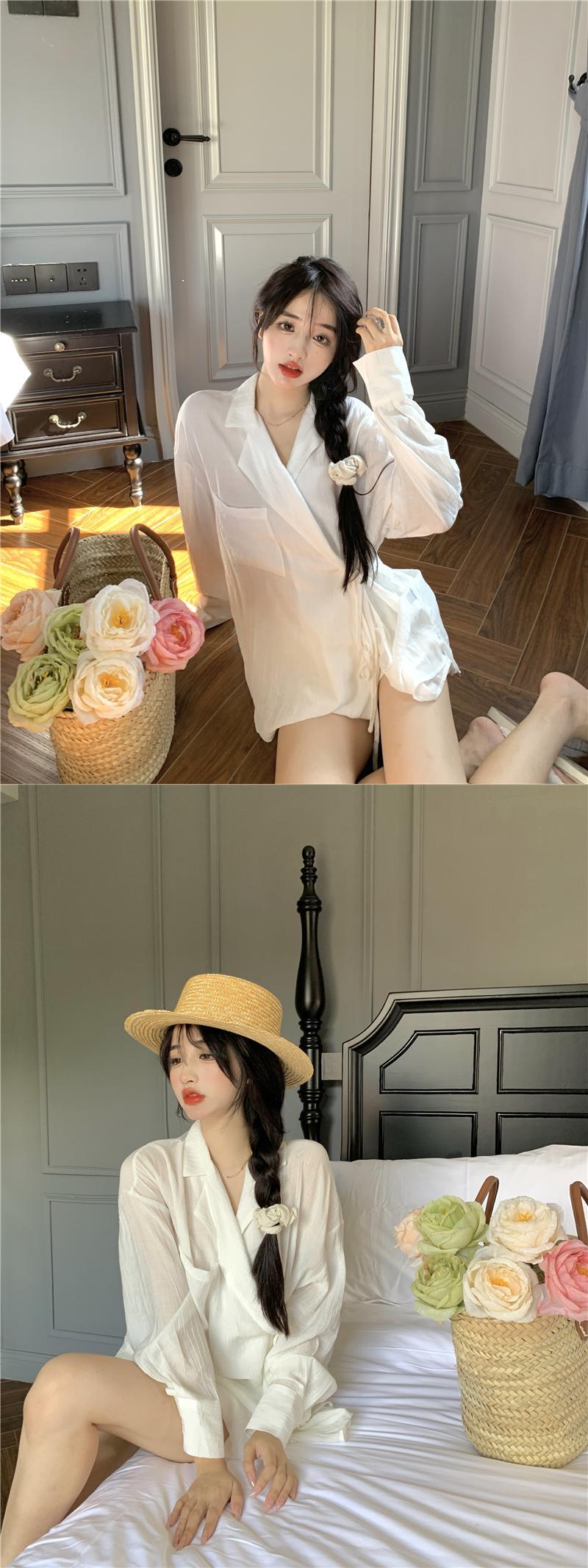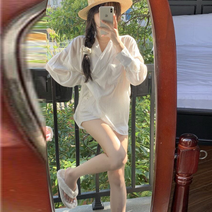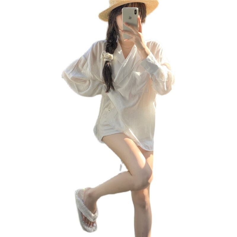 オータムホワイトシャツ カジュアルスタイルカラー薄手コート ルーズレーストップス ロング 秋物 Xiaofeijia31451945598
