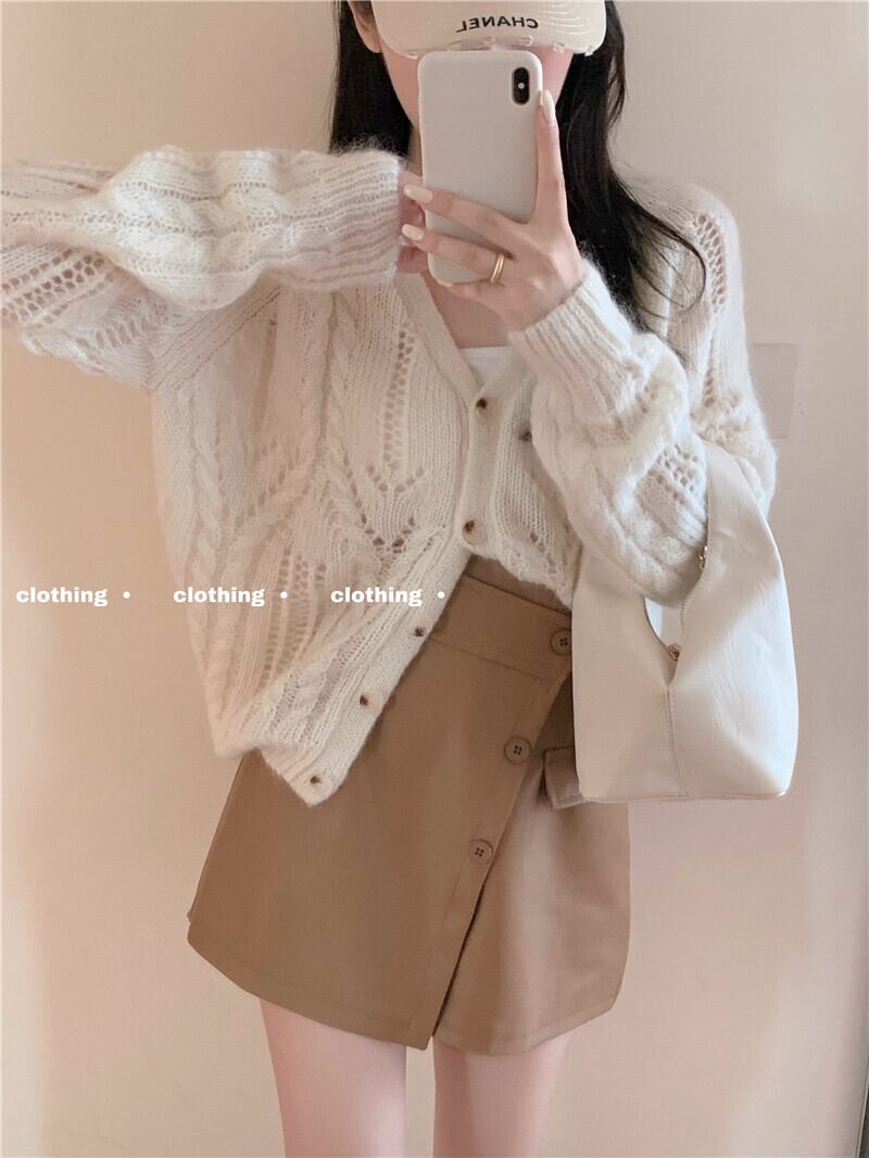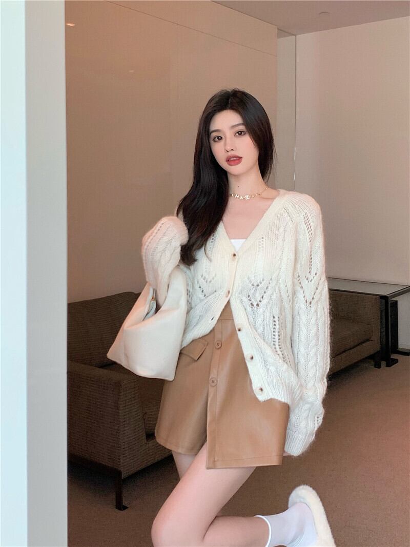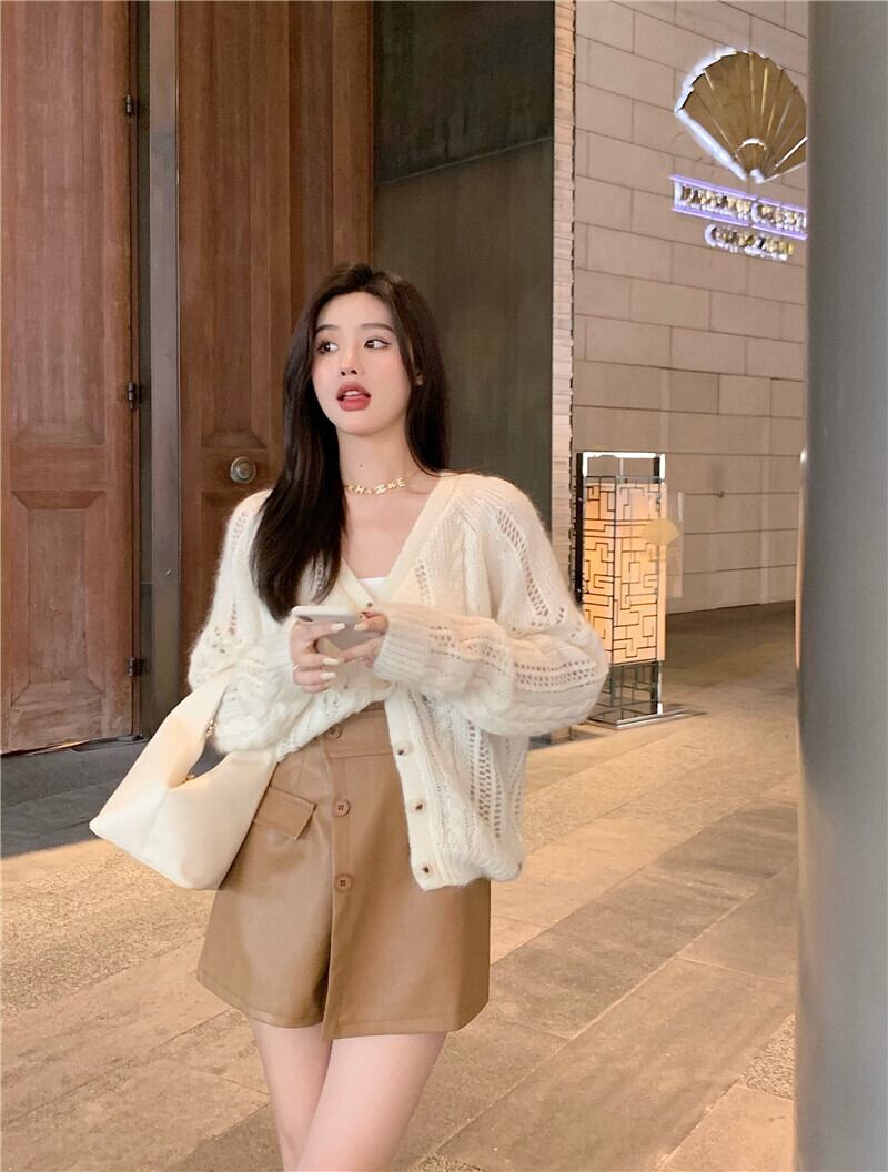 レザースカート オータムウェストハイウェスト薄手Aラインショート 秋物 Xiaofeijia10042218352