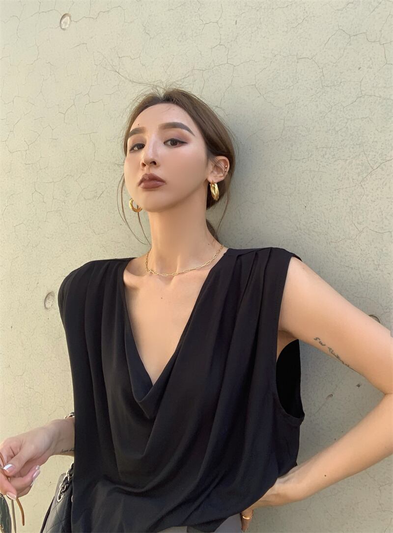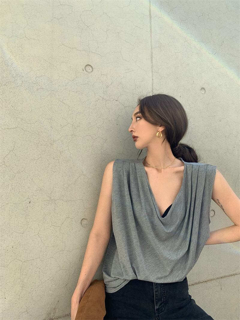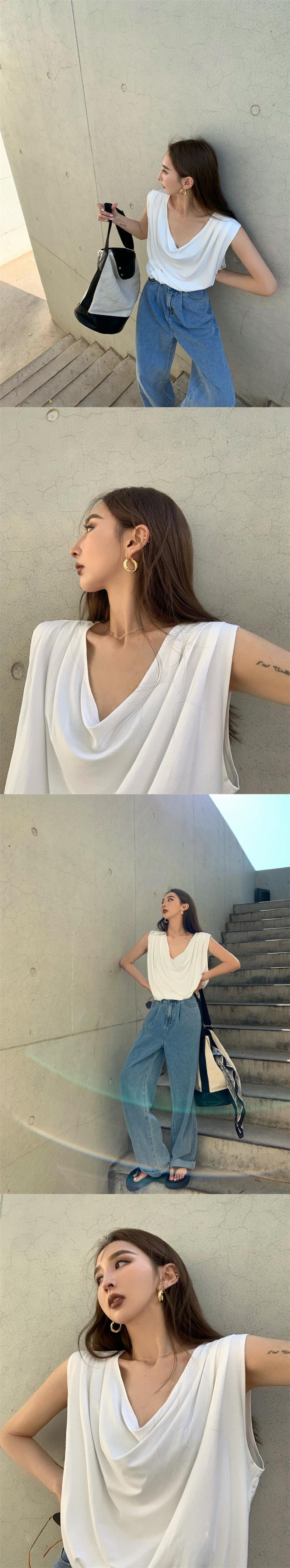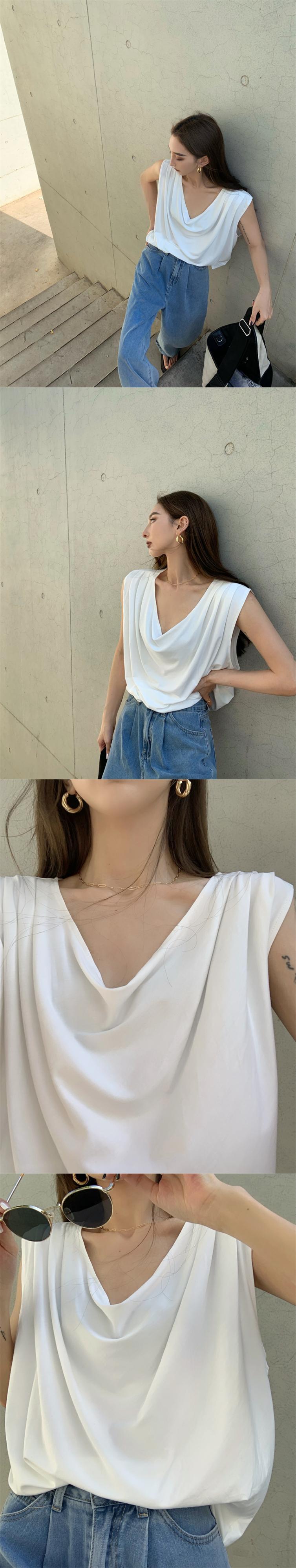 Vネックルーズノースリーブシャツ ソリッド カラースタイルTシャツ レディースサマー 夏物 ソリッドカラー ヨーロピアン Xiaofeijia96452038094