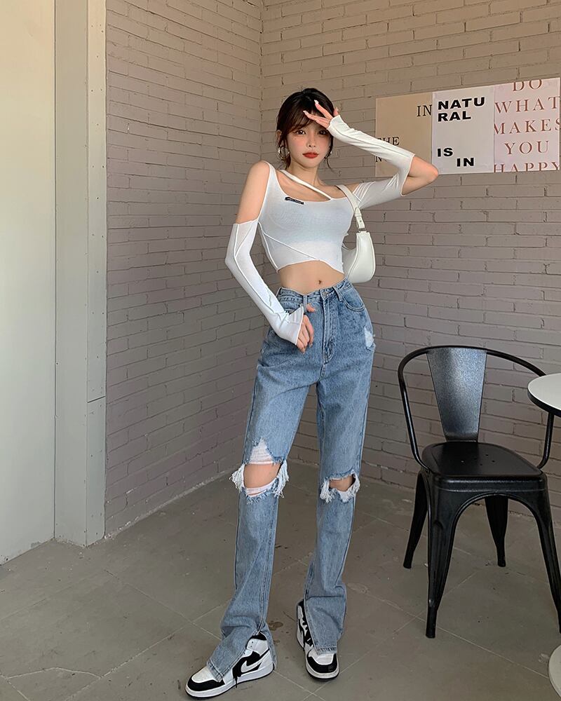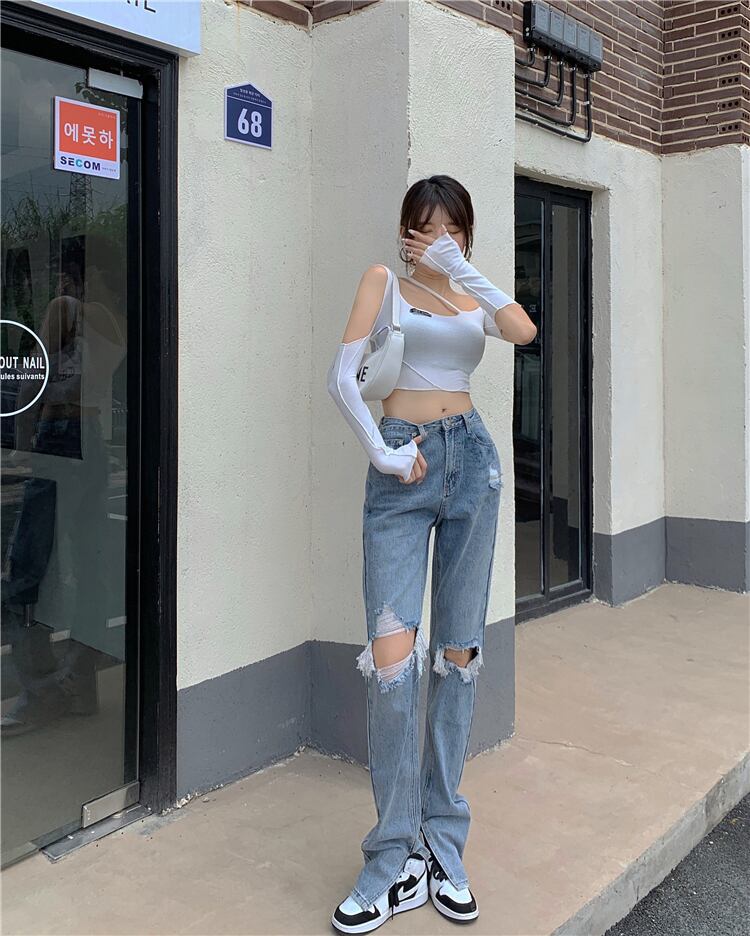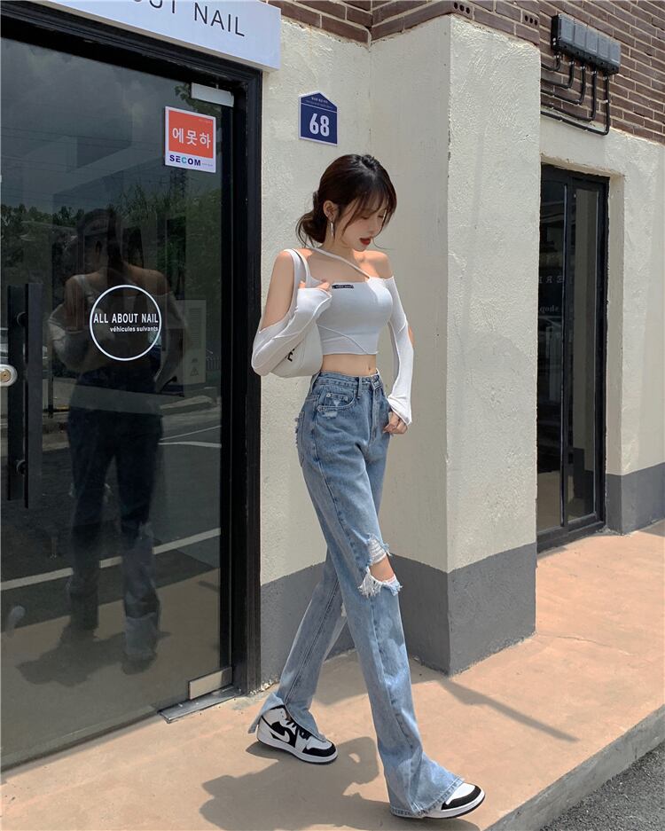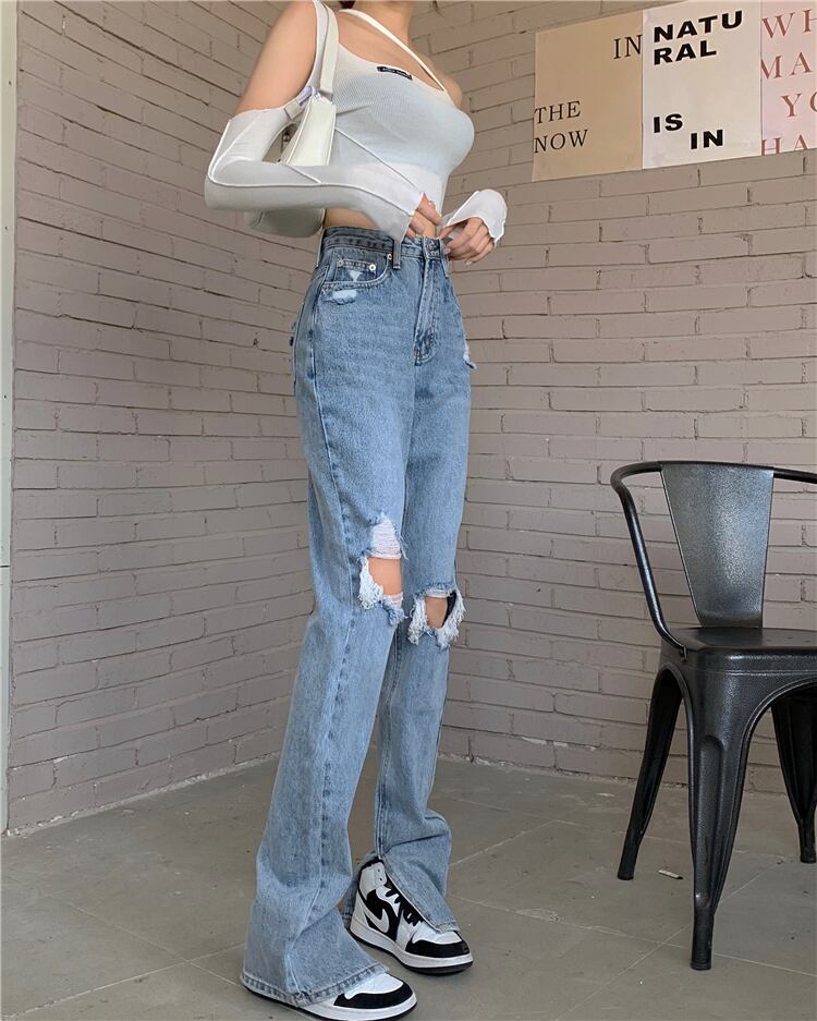 ジーンズ オータムハイウェストウェストブルーパンツ 秋物 Xiaofeijia40320944495
